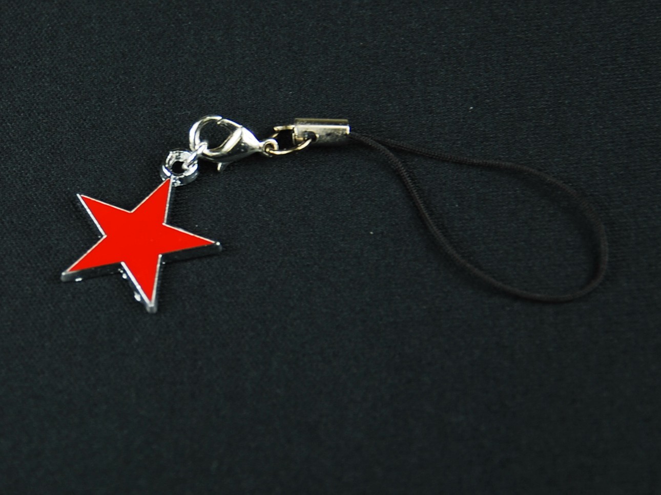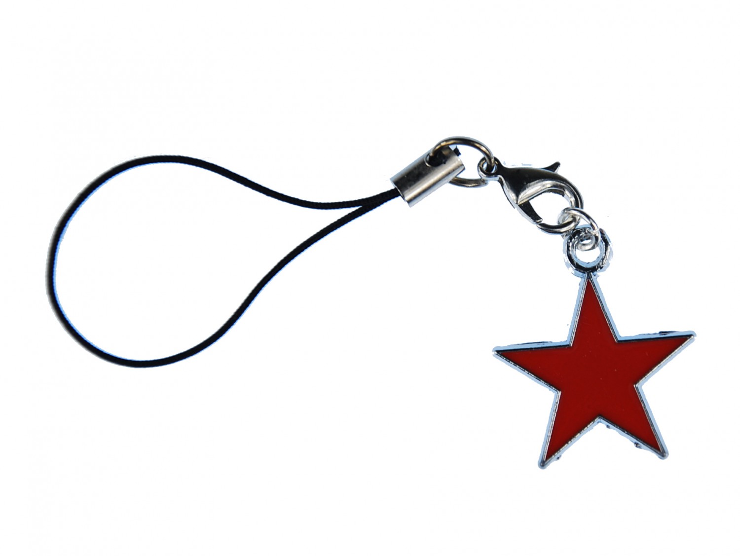 Cooler Anhänger fürs Handy mit rotem Stern aus emailliertem Metall.