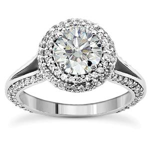 Timeless Halo Design! The perfect words to describe this ring! Available in your choice of gold or platinum, it’s an elegant pave diamond encrusted ring that she’ll definitely love! 1.45 Ct total diamond weight consisting of a beautiful 0.50 Ct G/H color and SI1/SI2 clarity center stone surrounded by 0.95 Ct rich and sparkling matching quality side diamonds.