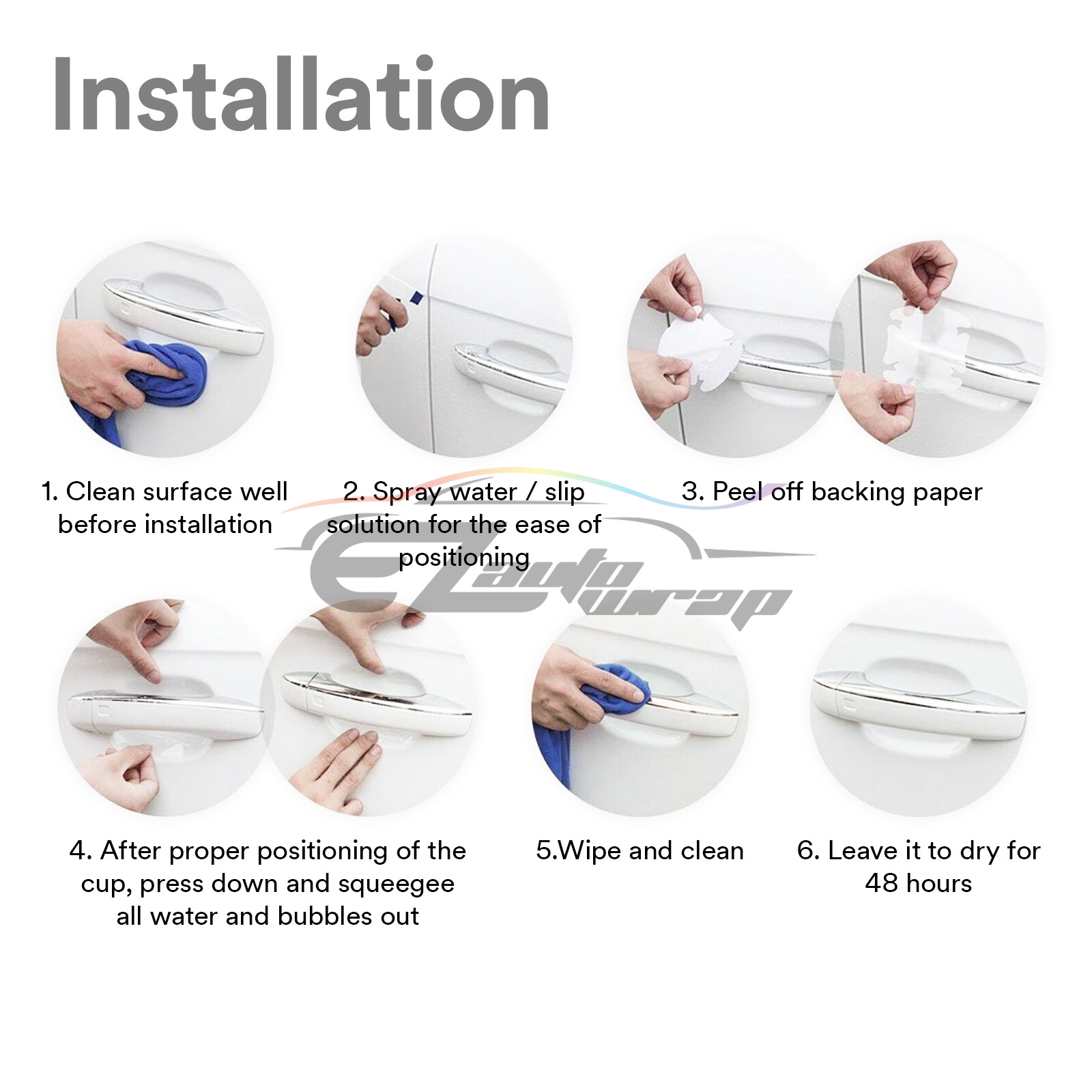 This protection vinyl film will keep your vehicle's appearance by protecting its paint from chipping, scratching on your door handle paint. The protection vinyl film durable, transparent and nearly invisible.