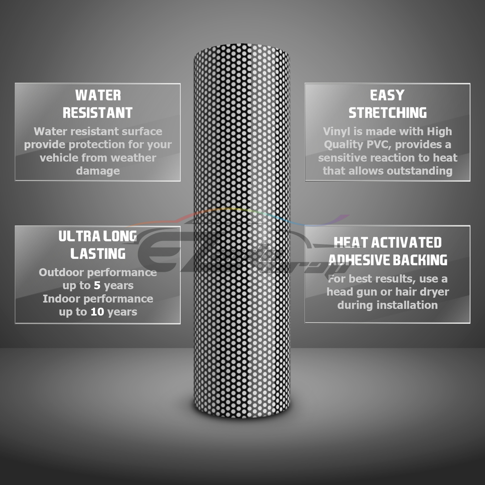 Perforated printing film acts like a one-way mirror, allowing you to see out through advertising decals placed on your window. An easy, cost-effective way to increase your store traffic without obstructing visibility. This polymeric printing vinyl is suitable for application on windows and vehicles, and conforms to curved surfaces.