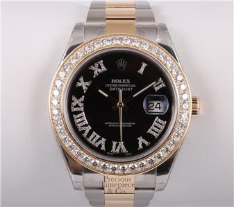 | DIAL | Custom Black Dial with VS Roman Numeral Diamond Hour Markers (VS G-H color) |