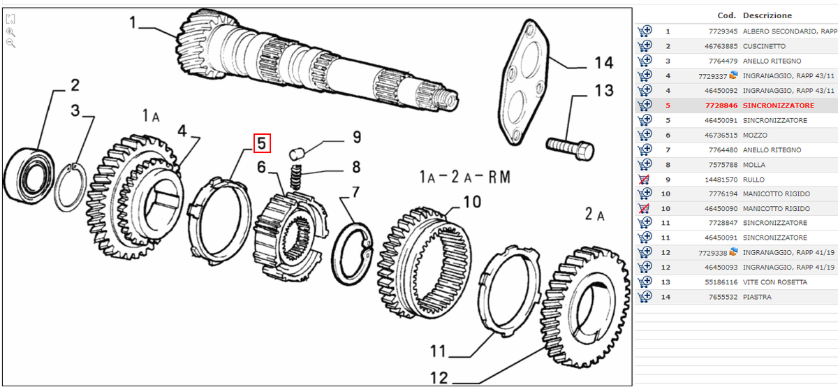 SINCRONIZZATORE 1° MARCIA PUNTO Y10 Y CINQUECENTO UNO BRAVO BRAVA
