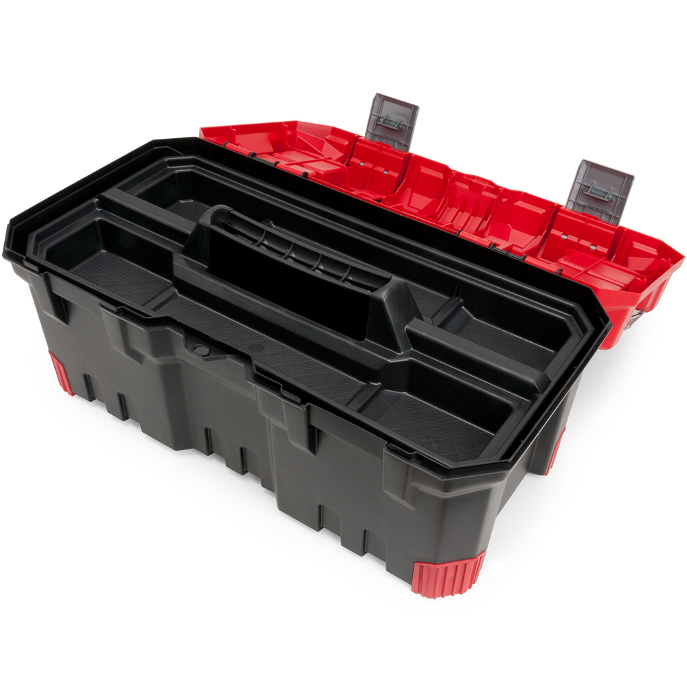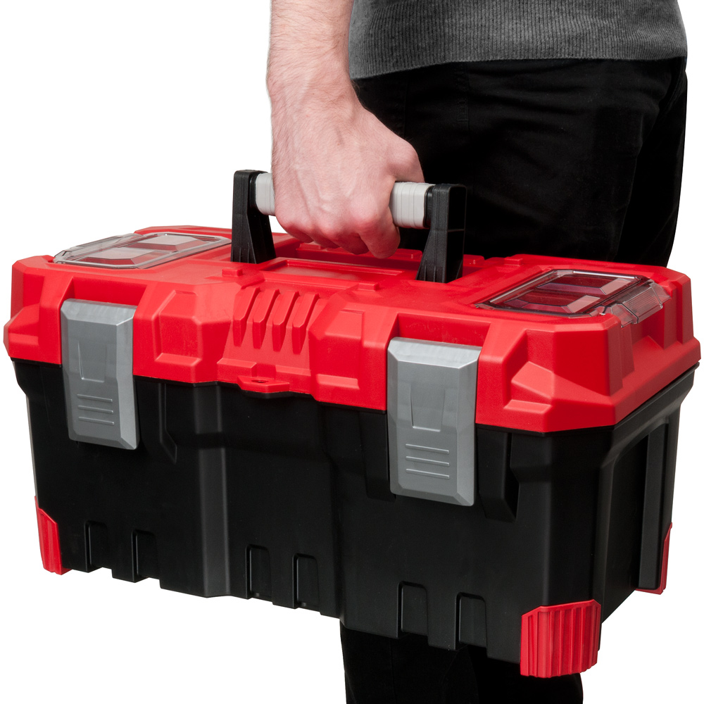 Dieser Werkzeugkoffer ist ideal für Werkstatt, Hobby, Haushalt oder Beruf. Mit 490x260x240mm (310mm Höhe mit aufgestelltem Griff) haben Sie viel Platz für Ihr Werkzeug samt Zubehör.