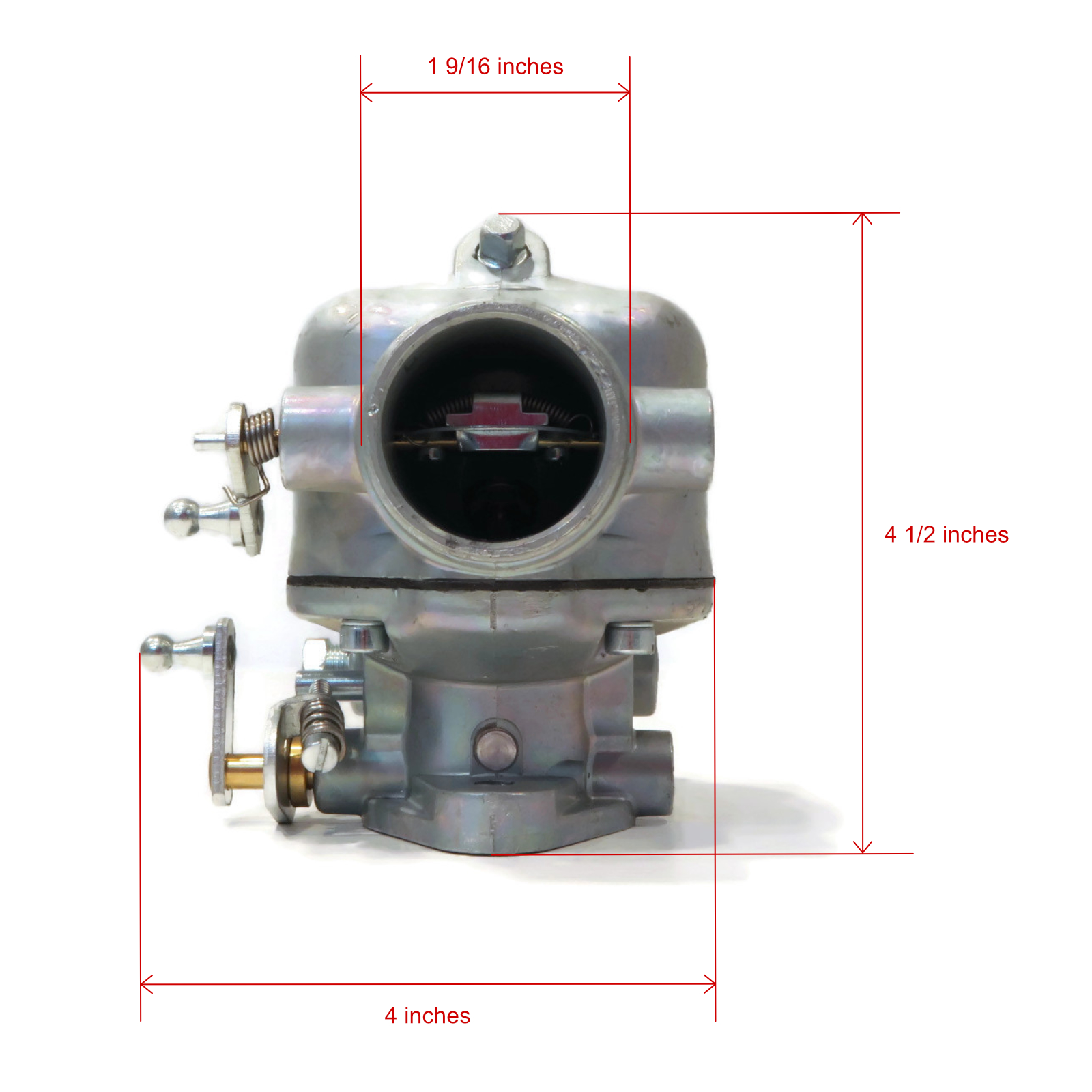 • Specs - Mounting Stud Center to Center: 2 1/4". Throttle Bore Throat Diameter: 1 1/16". Choke Air Horn (Air Inlet) Outside Diameter: 1 5/8". Fuel Inlet: 1/8" NPT. Refer to images 2 & 3 for more information