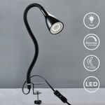 B.K.Licht I LED Klemmleuchte inkl. GU10 5W Leuchtmittel I 400lm I dimmbar in 3 Stufen I flexibler Schwanenhals mit Silkonüberzug I Leselampe für Schlafzimmer Schreibtisch Büro I Tischlampe Schwarz