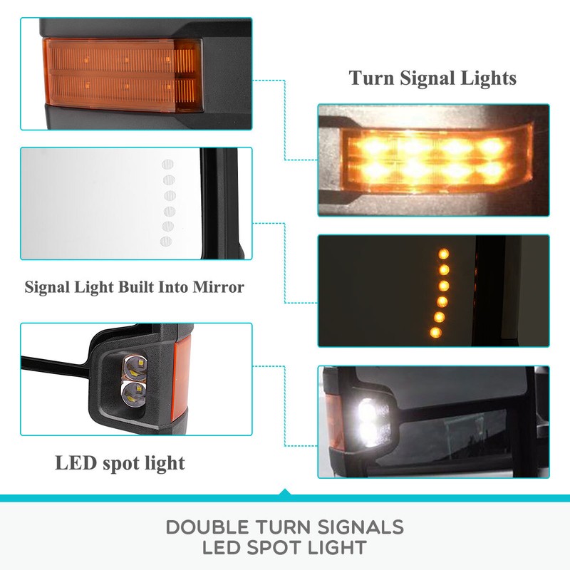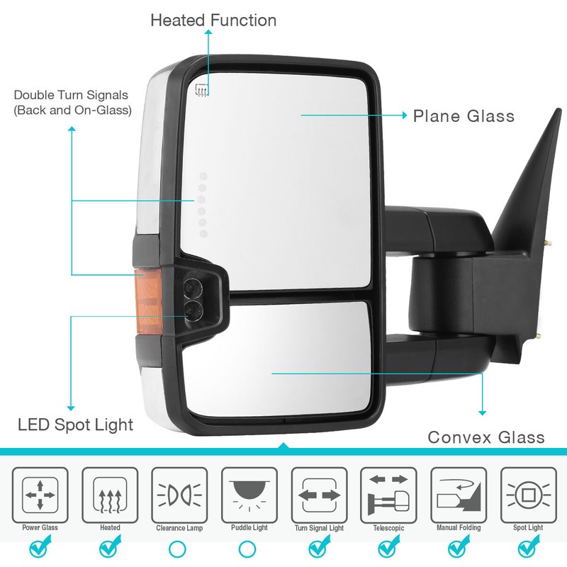 4. Tow mirrors will work for compatible vehicles with listed functions only. If your vehicle does not have those functions, these mirrors may not function well.