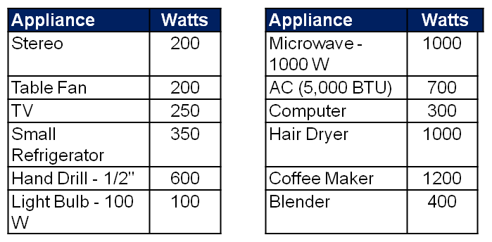 List of power usage of typical AC appliances