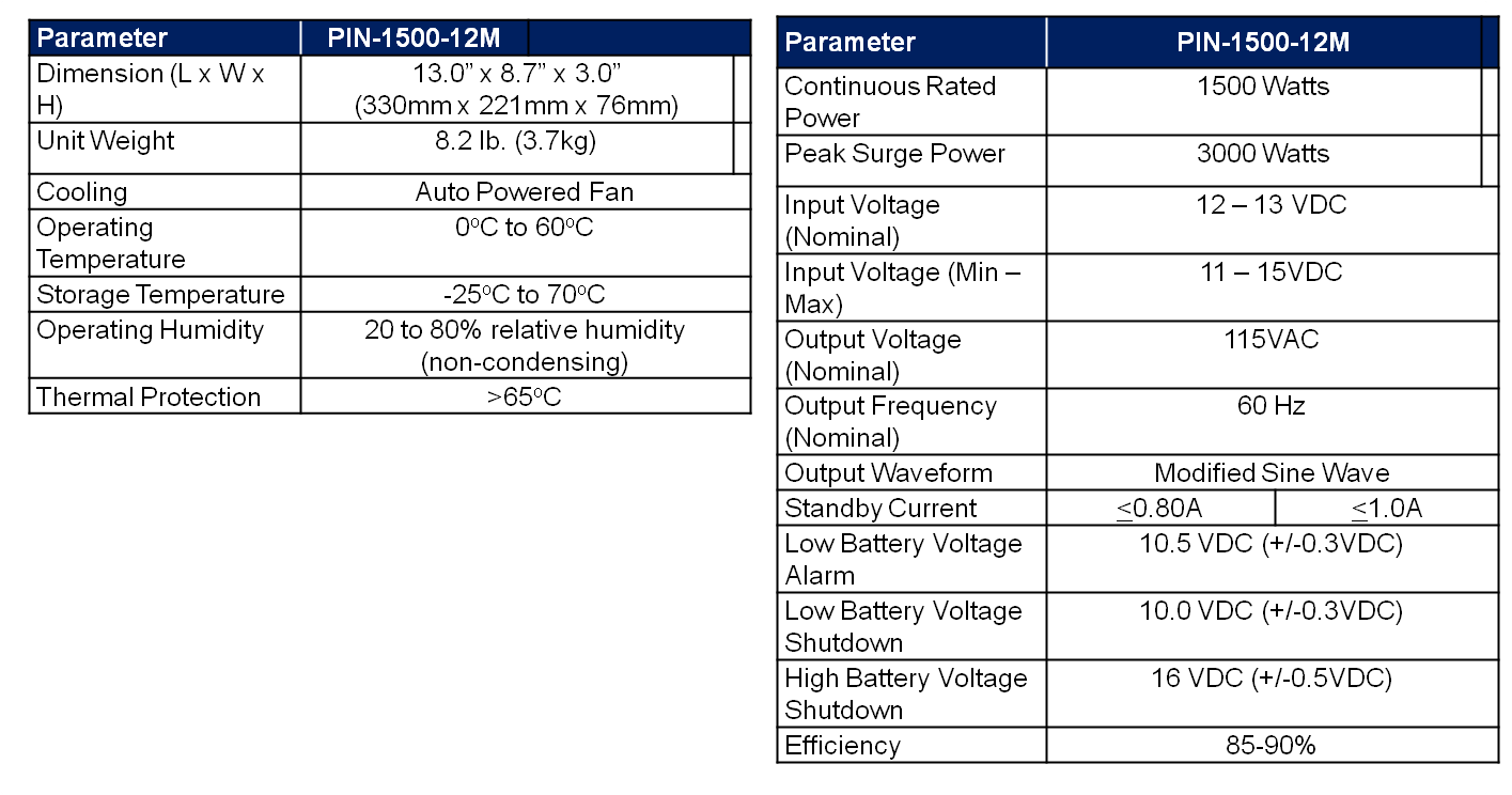 - VertaMax 1500W (3000W surge) Modified Sine Wave Inverter