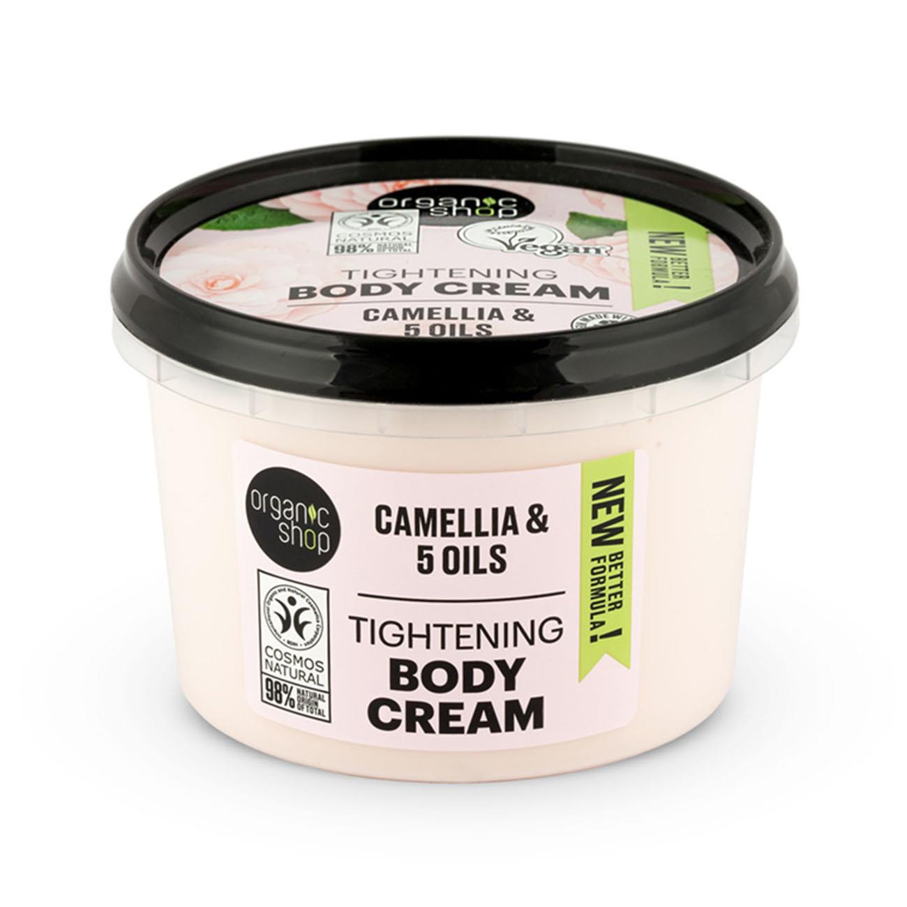 - Our light cream is made with Organic Camellia Oil and Five Oils Organic Oil of Grape Seed, Apricot, Rosehip, Macadamia, and Shea Butter it rejuvenates and softens your skin, leaving it smooth and velvety. Camelia helps to maintain youthfulness and beauty of the skin, improves color and slows down the aging process. Suitable for vegans. We create and collect only the best and most sustainable products for you. Organic Shop accumulates the magic of youth and the power of fruits. Organic Shop products are made with love and care. Plants and fruits, extracts of which are used in cosmetic formulas, are grown in ecologically clean places, without the use of chemical fertilizers and GMOs. All the useful things that nature offers us, we carefully collected in our products, consisting of at least 95% of natural ingredients of plant origin. At each stage of production, strict quality control is carried out. The products contain no synthetic fragrances and dyes, preservatives, parabens and other harmful substances. We use exclusively natural ingredients and certified organic oils and extracts. Suitable for use at any age. Not addictive. Each of the Organic Shop line products meets three main requirements: Simple. Pure. Natural, Just what you need!