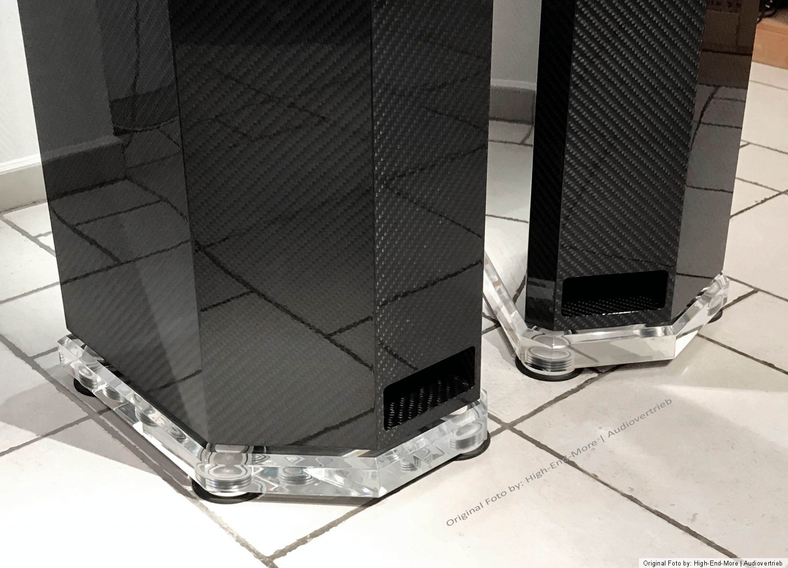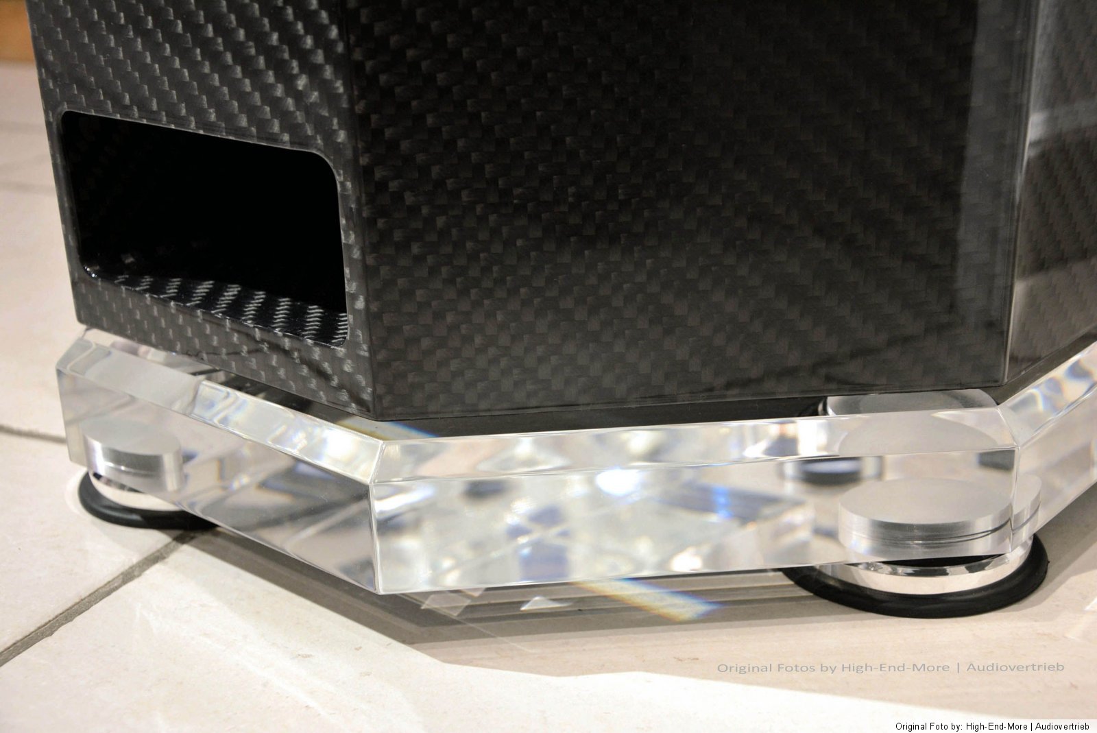 Die hochwertigen Lautsprecher Basen sind eine Sonderanfertigung aus 60 mm Acrylglas mit Diamantschliff (m² > Preis Rohmaterial= ca. 2.800 €!) und Spezial-Chock-Absorbern gehören mit zu dem Angebot. Phantastische Optik! Auf gesonderte Anfrage gibt es noch Edel Spikes aus V4a / XXL Version aus dem vollen gedreht Bilder folgen noch (Lieferung ohne LED Backlight, ohne V4a Spikes)