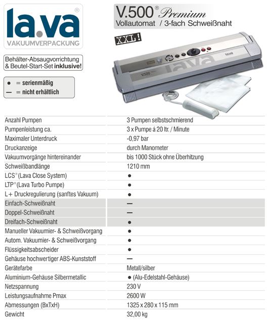 Vakuumiergerät la.va v.500 Premium mit 121 cm Breite + 70 € Gratis Set - riesig & Robust!