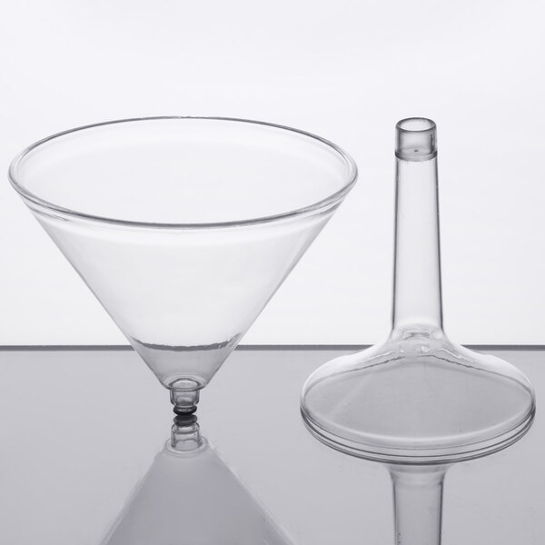 For an upscale, yet disposable addition to events, trust your martini service to this Visions 5.5 oz. clear plastic 2-piece martini cup. This martini cup is perfect for cocktail hour at banquets, receptions, dinner parties, and open houses. Plus, its iconic look gives your events the sophisticated edge you want with the timeless appearance you need.