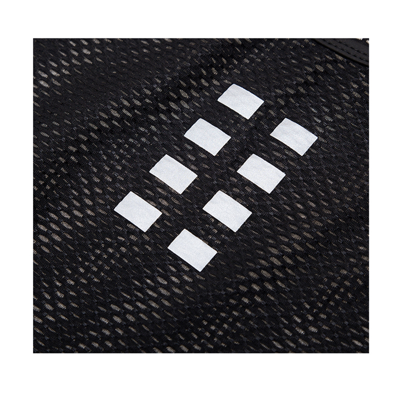 Two thick reflective strips on the front, two short reflective strips at the back waist