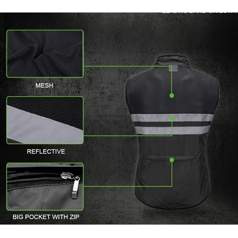Zipper pocket with reflective WOSAWE logo on the left chest for keys, cards and other small items