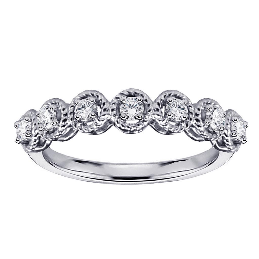 0.21 Ct 7-stone diamond wedding band in white gold with G/H color and SI clarity diamonds.