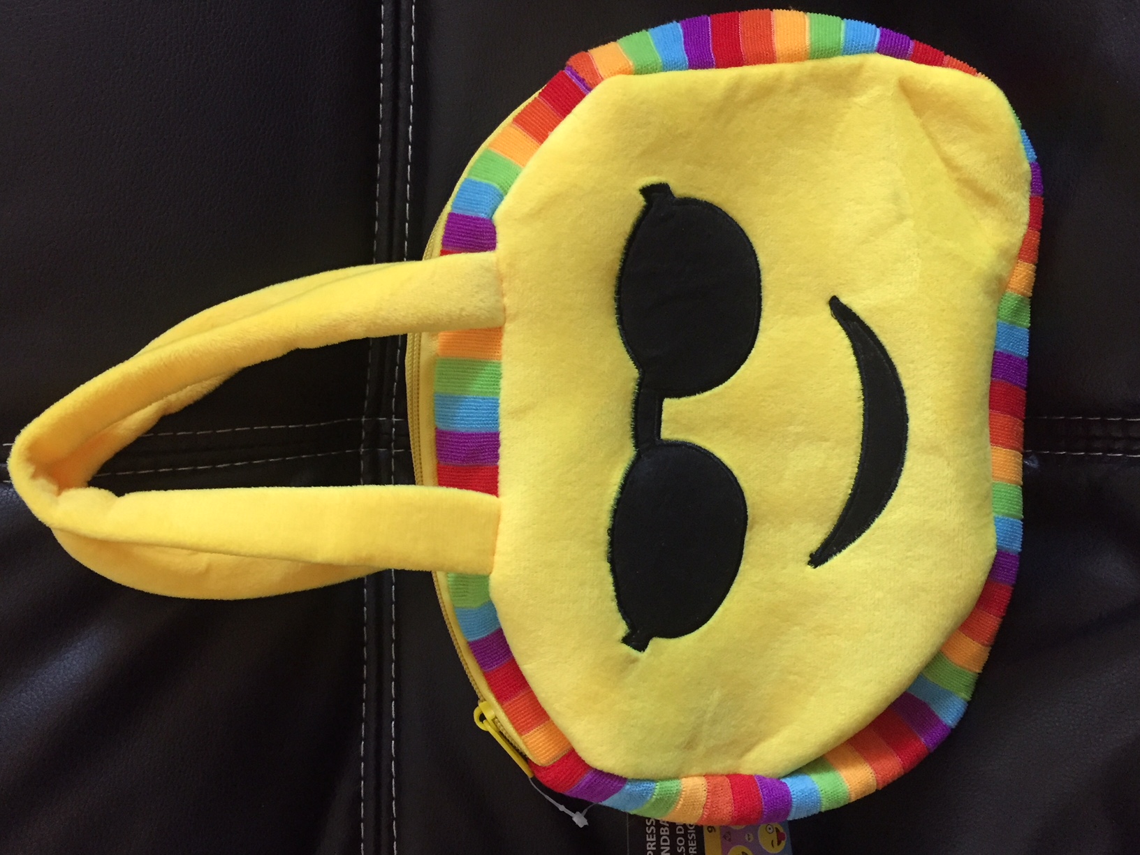 Zippered Yellow Color Smiley Bags with Rainbow Trim |
