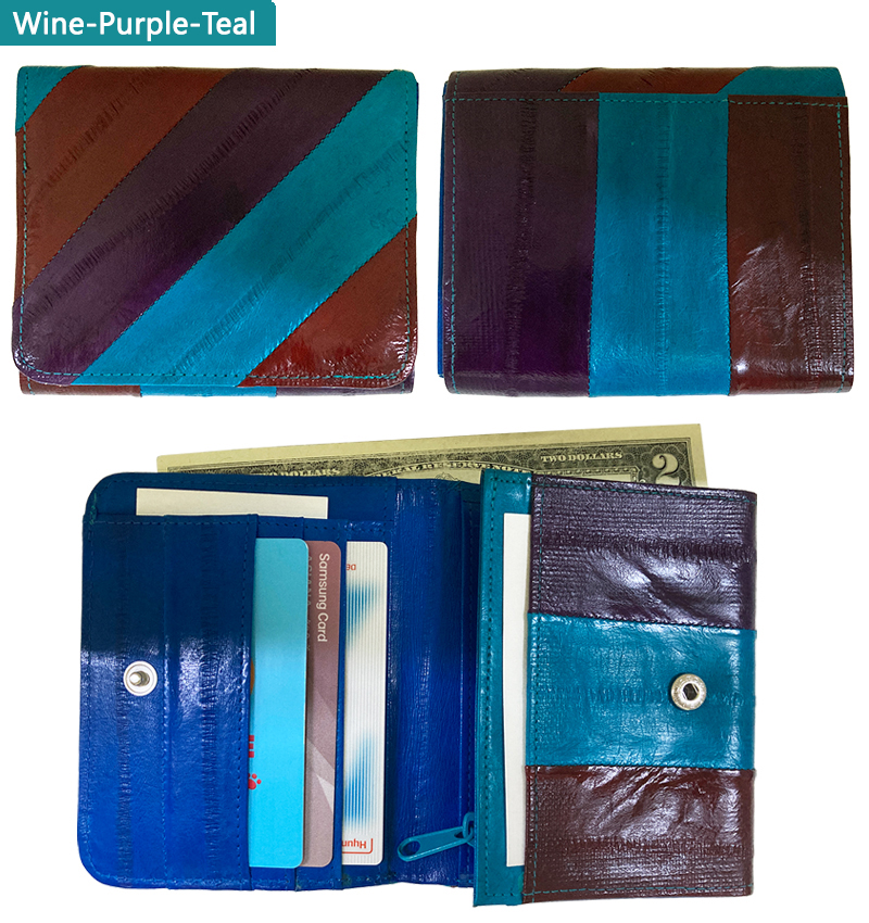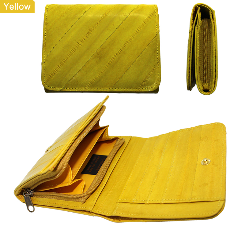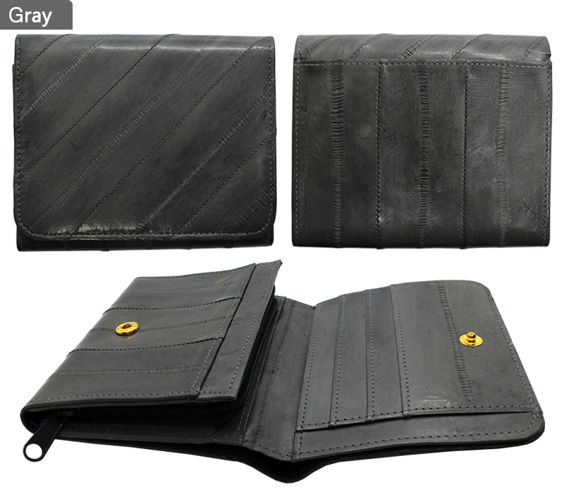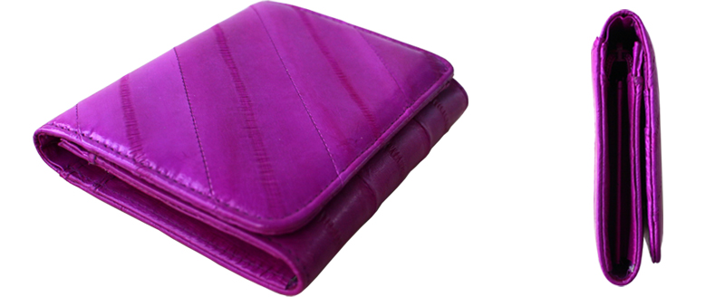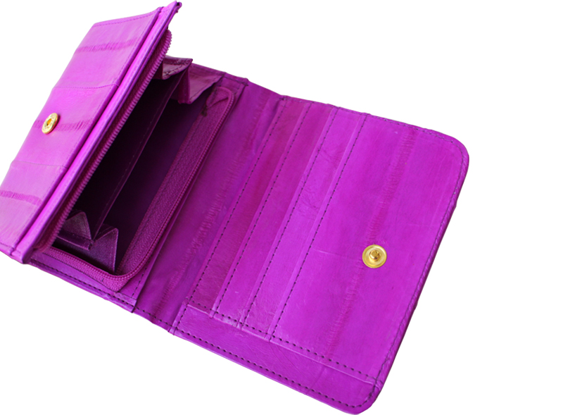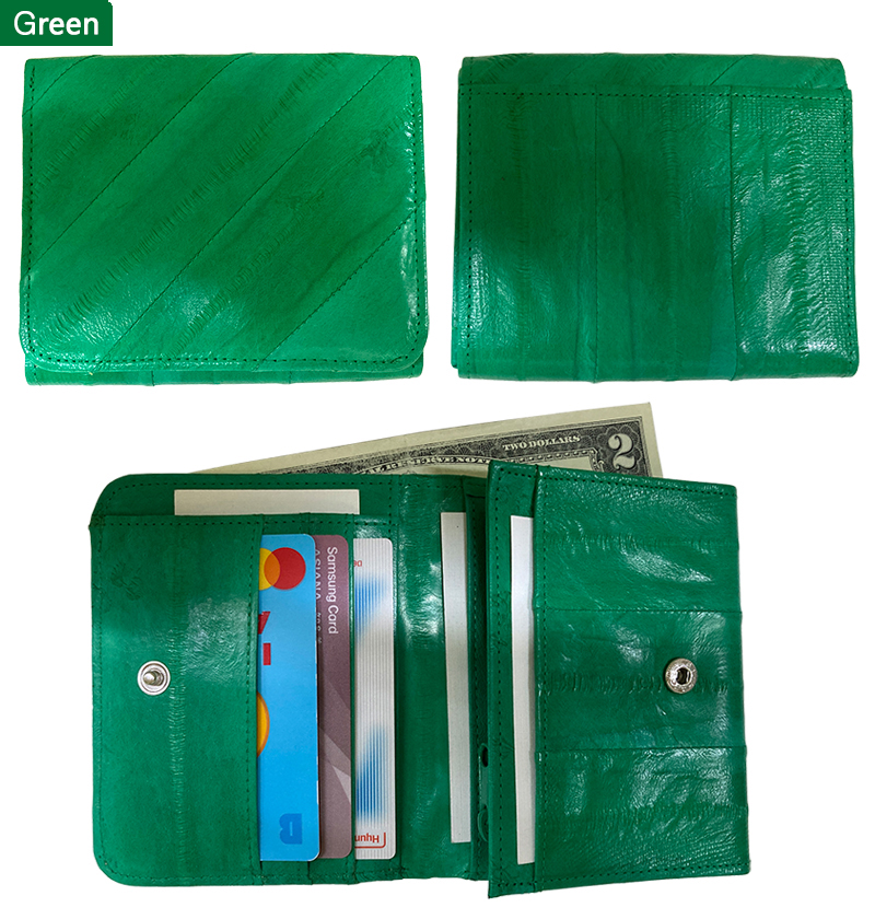 | Genuine Eel Skin Leather Coin Credit Card Wallet Purse * Material : Genuine Eel Skin Leather * Size : 4.33 x 3.54 x 0.87 inch (11 x 9 x 2.2 cm) * Colors; Black, Dark Brown, Dark Gray, Dark Purple, Green, Light Brown, Light Green, Magenta, Orange, Red, Tanbrown, Teal, Wine, Yellow, Wine-Lightbrown-Tanbrown, Wine-Purple-Teal * 3 Credit Card Slots * 1 Bill Compartment * 3 Slots * Inside zippered coin pocket 1 * Outside open slot 1 * Button Snap Closure # The lining of wallet can differ in product. # Product color can be different in dye process. # Colors may seem different depending on monitor resolution. # Genuine eel skin features; 1) Eel skin products dislike water. Please avoid the water. 2) If eel skin products stained with water, dry in the shade. 3) Eel skin products color is nice as use for a long time. 4) Surface finish and color can be erratic by handmade products. 5) A scratch and bites on surface of products is the proof of the genuine eel skin. |