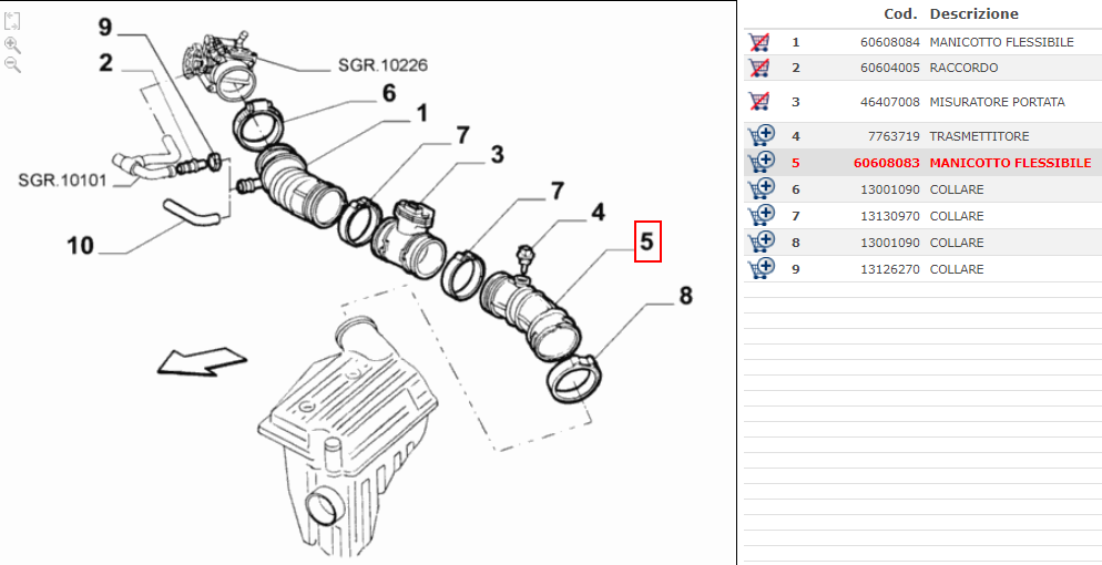 TUBO CONDOTTO MANICOTTO ASPIRAZIONE ALFA ROMEO ALFA 145 146 155
