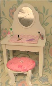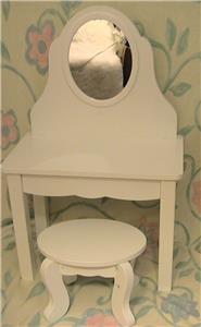 Wooden Doll Vanity with Mirror and Padded Stool for American Girl Doll HTF