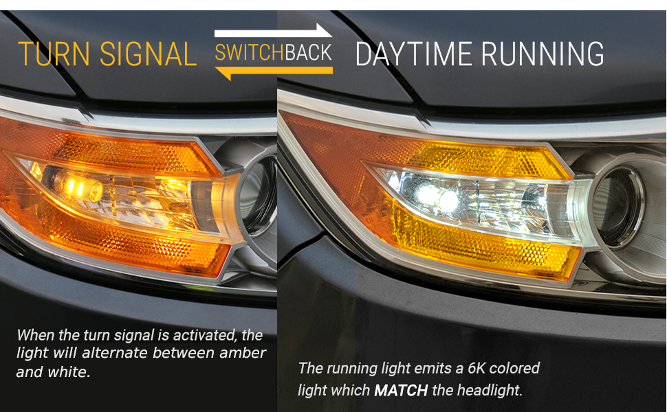 - Turn Signal Mode: Flashes back & forth in Amber Yellow LED & Xenon White LED