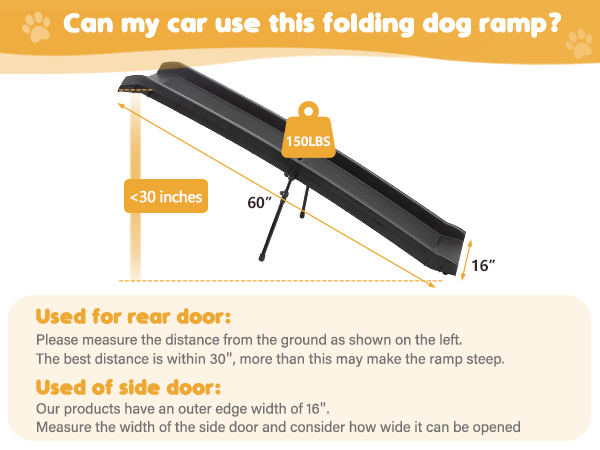 All you need to do is to attach the pet ramp to the vehicle, and your dog can easily go up and down the nonslip ramp into and out of your car with the protection of side rails. After done, you can fold the dog truck ramp and tuck away in the car.
