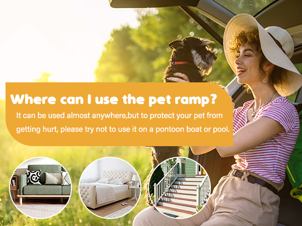 No assembly. Just remove the packaging, unfold the pet ramp, and it's immediately ready to use. Use this folding dog ramps to help your four-legged friend to enjoy getting in and out of the car, minivan,SUV and high bed safely.