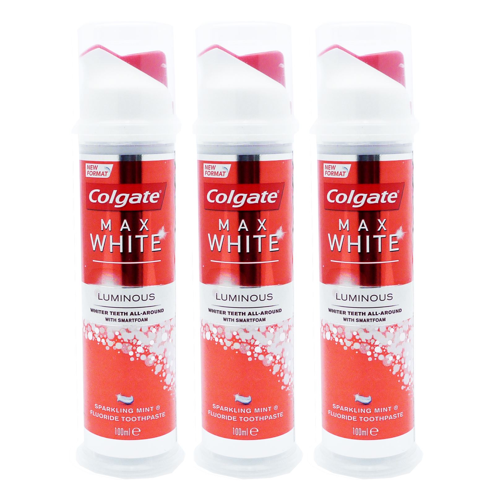 3 X Colgate Toothpaste Max White Luminous Pump 100ml