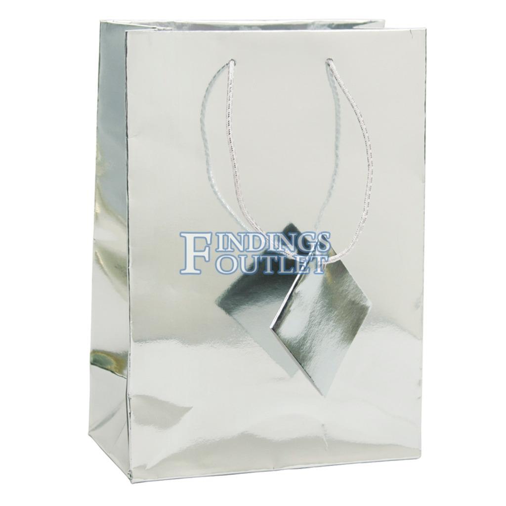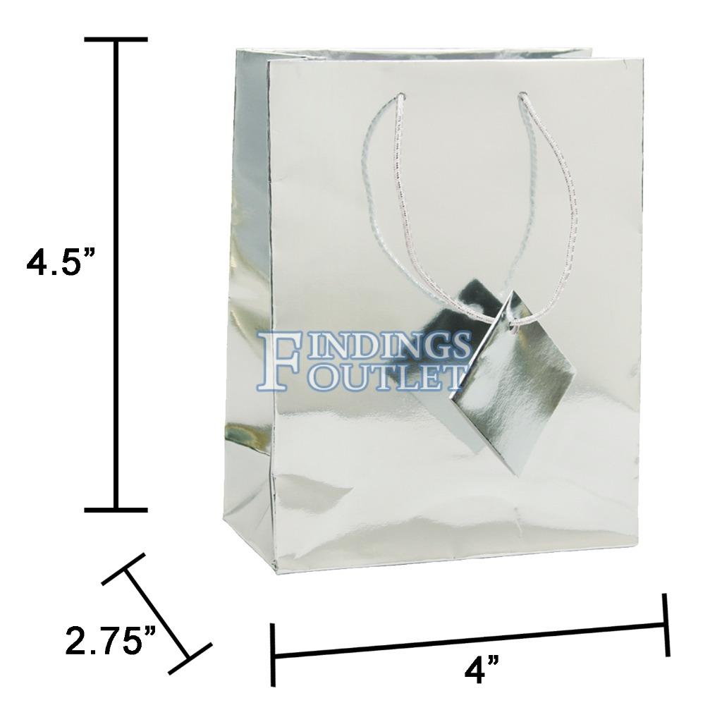 Glossy Paper Metallic Silver Gift Tote Bag Rope Handle 20 Pack 4" x 2.75" x 4.5"