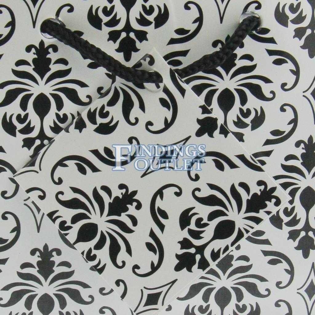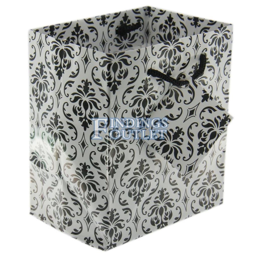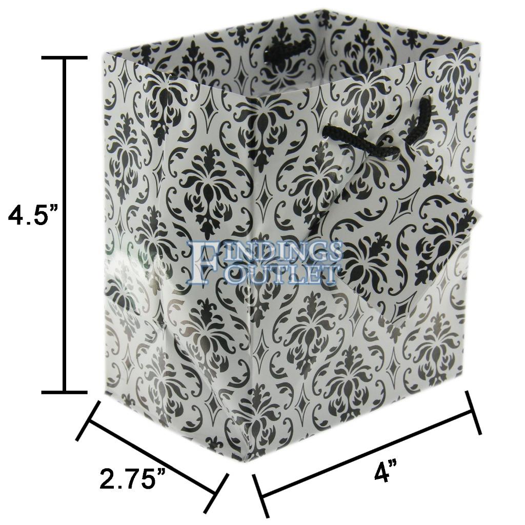 Glossy Paper Damask White Gift Tote Bag Rope Handle 10 Pack 4'' x 2.75'' x 4.5"