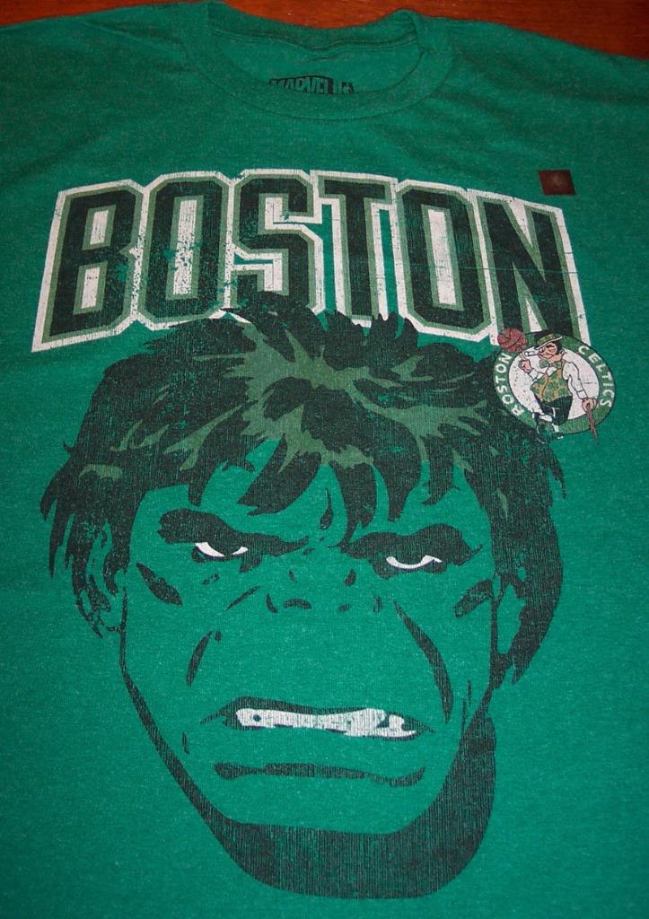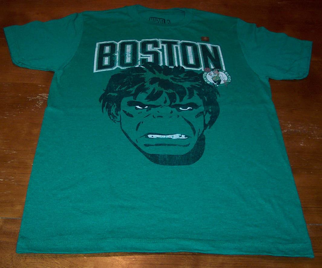 This is a VINTAGE STYLE BOSTON CELTICS NBA BASKETBALL THE INCREDIBLE HULK MARVEL COMICS T-Shirt. It is a size SMALL and it is NEW. It is 19 inches from armpit to armpit and 28 inches in length. It is an officially licensed Marvel / NBA Shirt. The Print is made to look vintage. AWESOME!! Marvel / NBA Crossover shirt. Combine auctions to save on shipping. Winning bidder to e-mail within 3-days and payment to be received within 10-days. D3AG