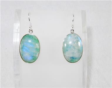 These flashy Rainbow Moonstone earrings are set in 925 sterling silver. The stone measures 1/2 inch (13 mm) across and 3/4 inch (20 mm) long.