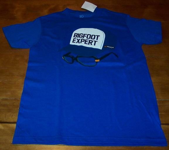 | This is a 30 ROCK FRANK BIGFOOT EXPERT T-shirt. It is a size SMALL, and it is New with the tag. It is 17 1/2 inches from armpit to armpit and 28 inches in length. Winning bidder to add $5.00 shipping in the US(international will be more). If you are from ITALY you must purchase PRIORITY MAIL. No First Class option. Combine auctions to save on shipping. Winning bidder to e-mail within 3-days if not paying right away. Payment to be received within 10-days.