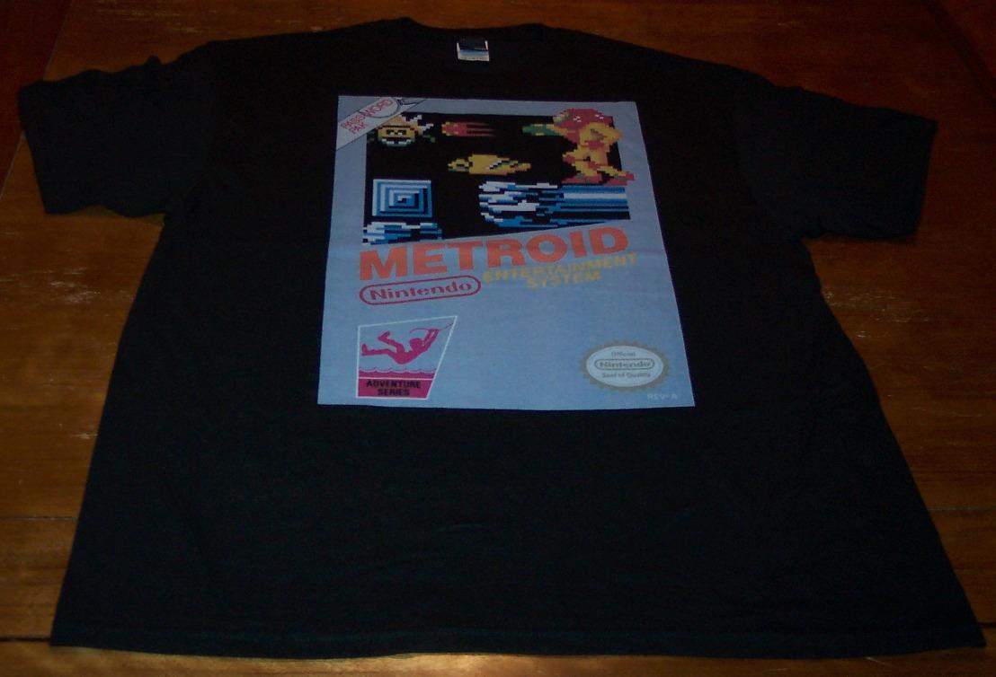 This is a VINTAGE STYLE METROID NES Nintendo T-shirt. It is a size XL, and it is NEW. It is 23 1/2 inches from armpit to armpit and 32 inches in length. Combine auctions to save on shipping. Winning bidder to e-mail within 3-days and payment to be received within 10-days. AD