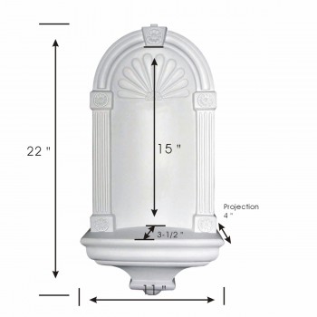 Wall Niches: Made of virtually indestructible high-density urethane our wall niches are cast from steel molds guaranteeing the highest quality on the market. High-precision steel molds provide a higher quality pattern consistency, design clarity & overall strength & durability. Lightweight they are easily installed with no special skills. Unlike plaster or wood urethane is resistant to cracking, warping or peeling. Factory-primed our wall niches are ready for finishing. Measures 22 in. high x 11 in. wide x 4 in. projection.
