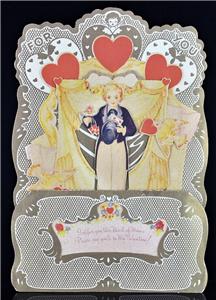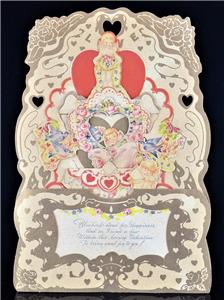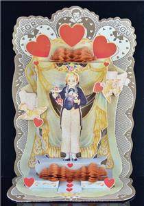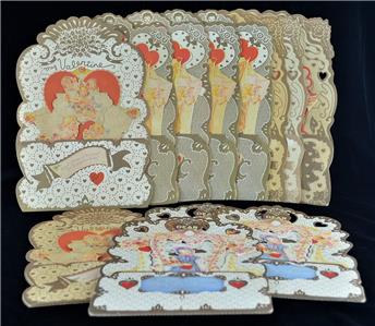 Offered for Sale are these 12 Beautiful Vintage Pop-Up Valentine Cards with 10 Envelopes. The cards have copyright information listed but no manufacturers name that I could find. The cards are VERY faded from age and the envelopes are sealed for the most part from moisture.