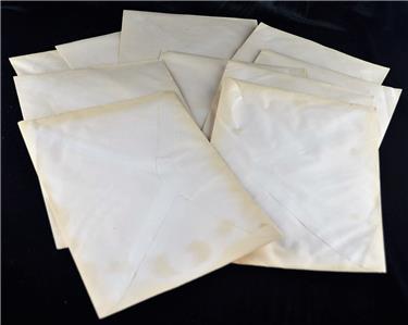 Condition: - Fair Condition - The cards are VERY FADED and show staining and wear from age. The photos were taken on a black background with photo lights and appear to be more vibrant than they look in person. These paper cards show better in the pictures than they do in person. The envelopes are sealed from moisture. Please see the pictures to view the condition of the item for yourself.