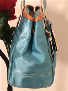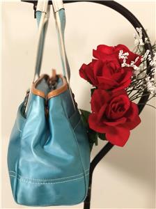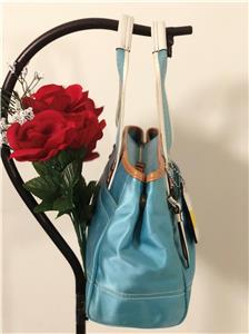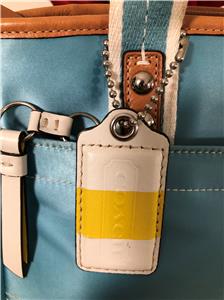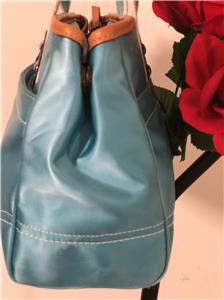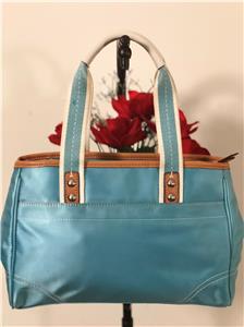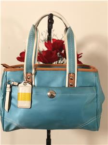 COACH Hampton Blue & White Double Handles Satin Satchel #F11992