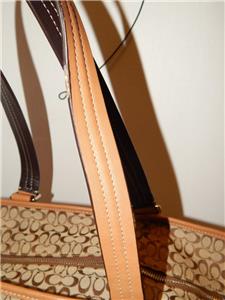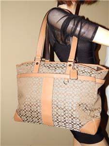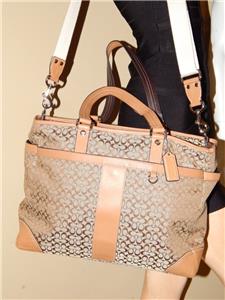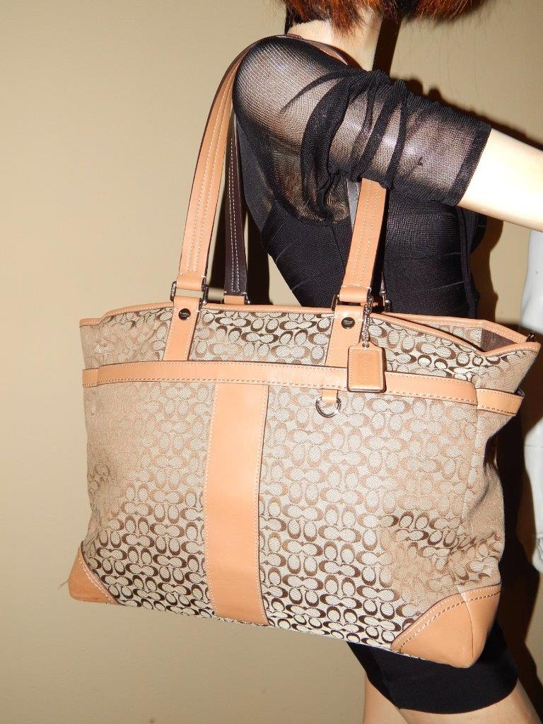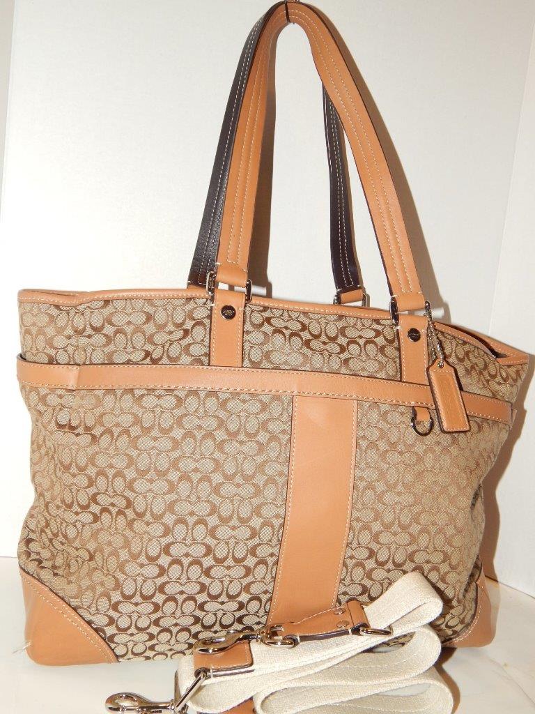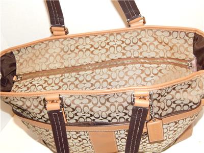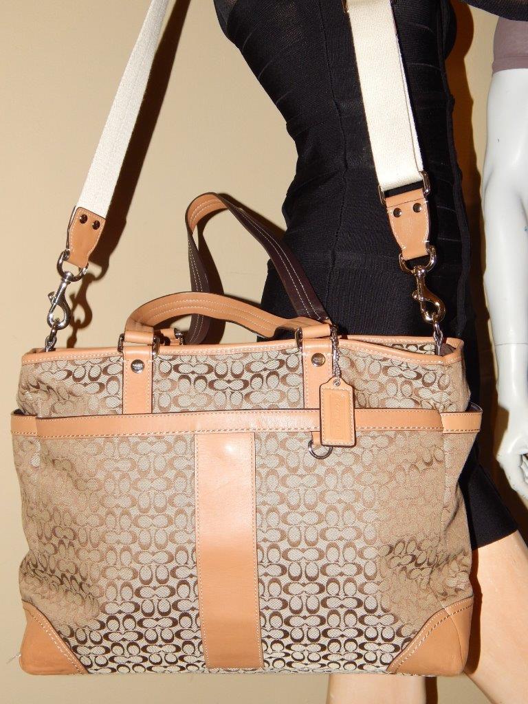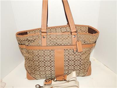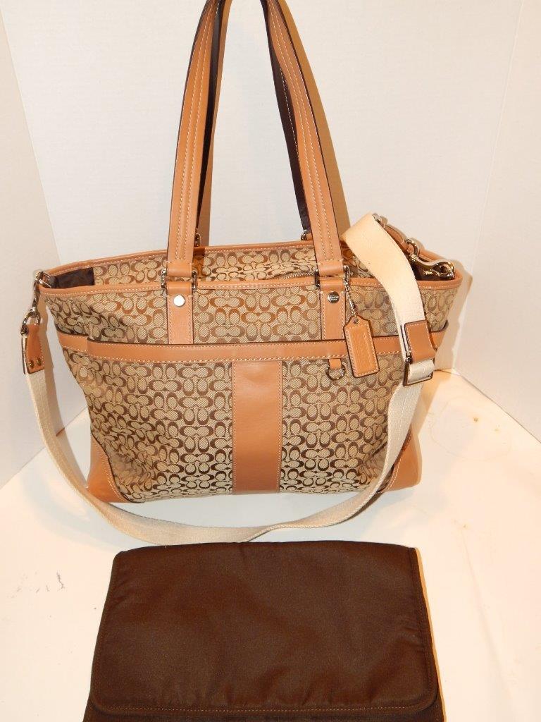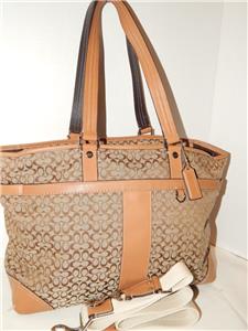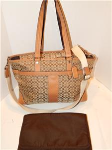 COACH Khaki Signature Crossbody Tote Handbag Multi Function Diaper Bag 77156
