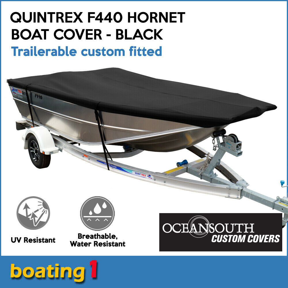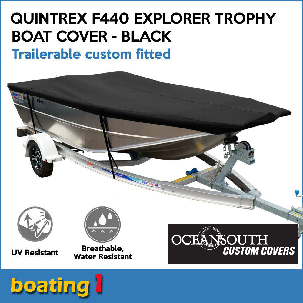 Premium fully trailerable custom covers mean you can now take the guesswork out of your selection and buy a cover that fits your boat like a glove. Our premium covers are patterned to fit over all standard fittings and fixtures on the Quintrex 390 Outback Explorer Boats and tested to ensure you get the best fitting cover available. Fully highway trailerable and made with 600 denier marine grade polyester canvas. This solution dyed fabric possesses exceptional colour fastness and UV resistance to provide you with many years of trouble free use.