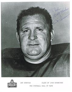 You are bidding on an original autograph of Art Donovan Football HOF on a photo, headshot #4.
