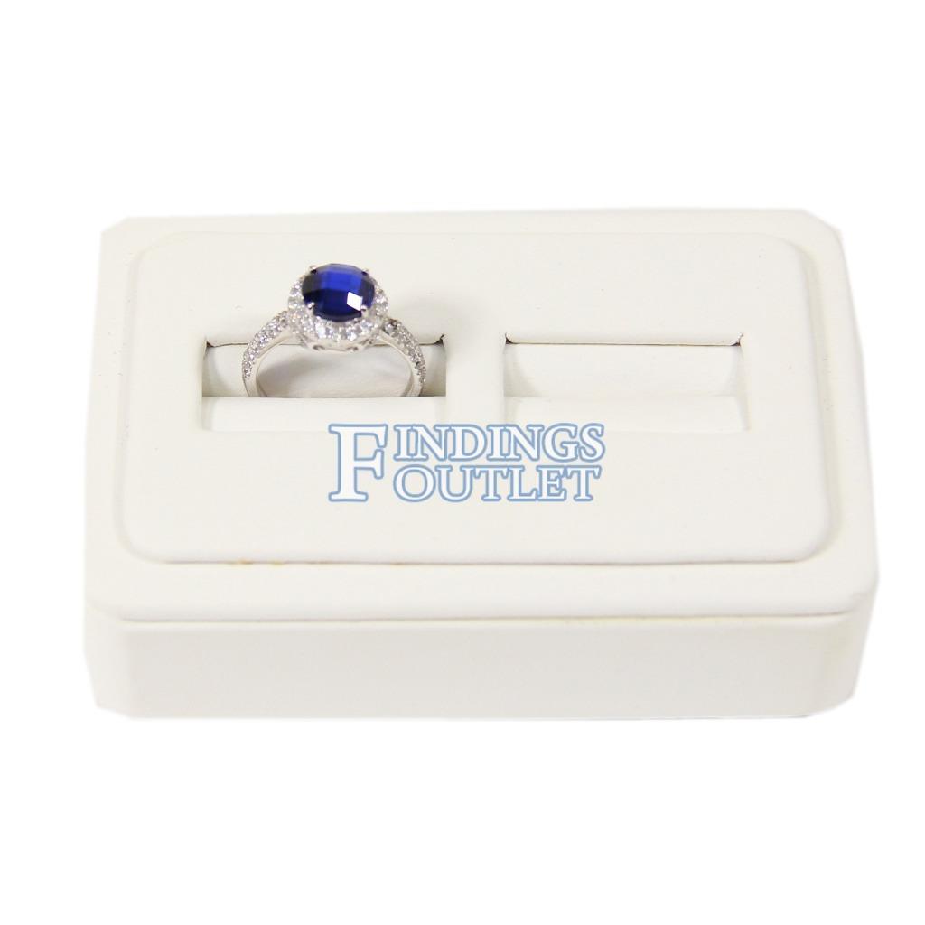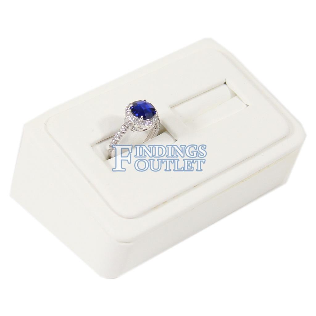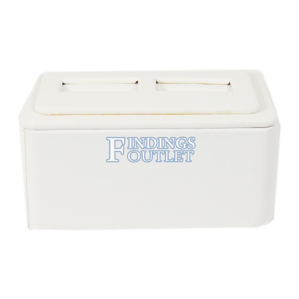 White Faux Leather 2 Ring Jewelry Display Holder Showcase Wedge Tray Stand Ramp