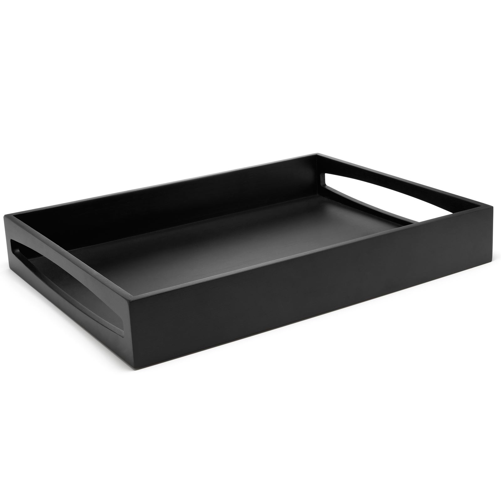Holz Tablett 40x30 cm eckig schwarz 2 Seiten-Griffe Serviertablett Küchentablett