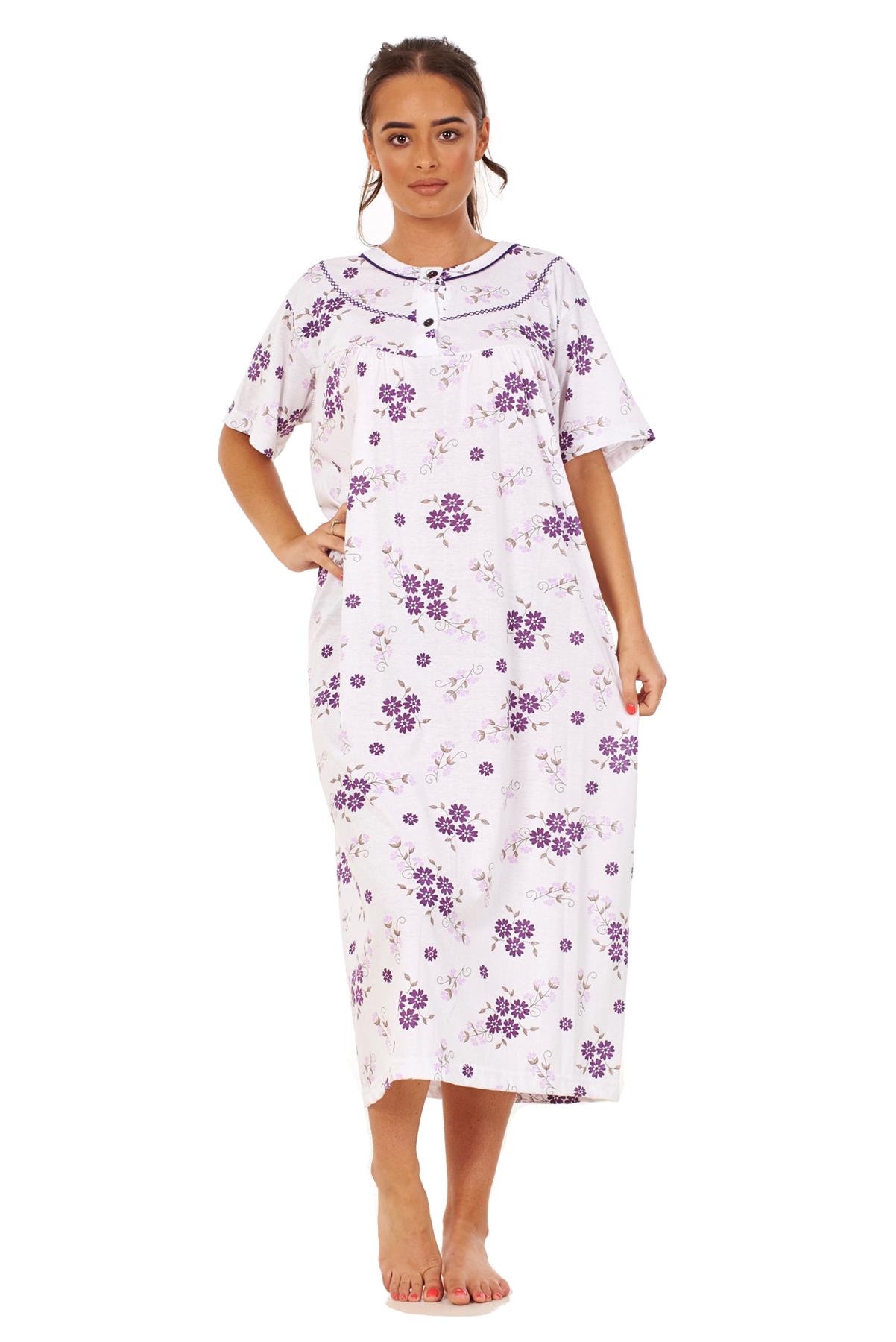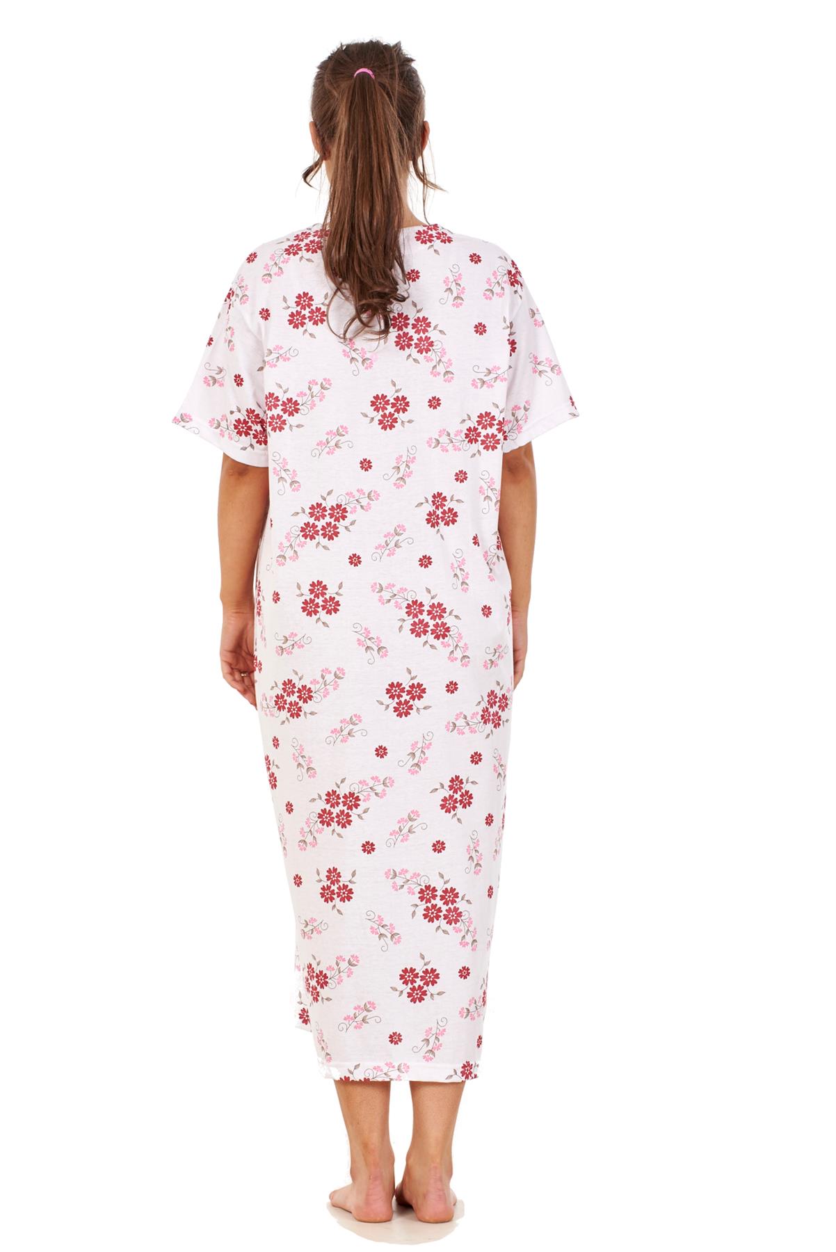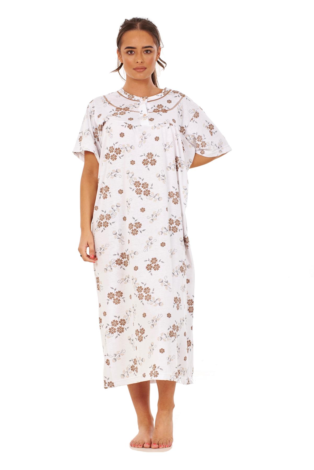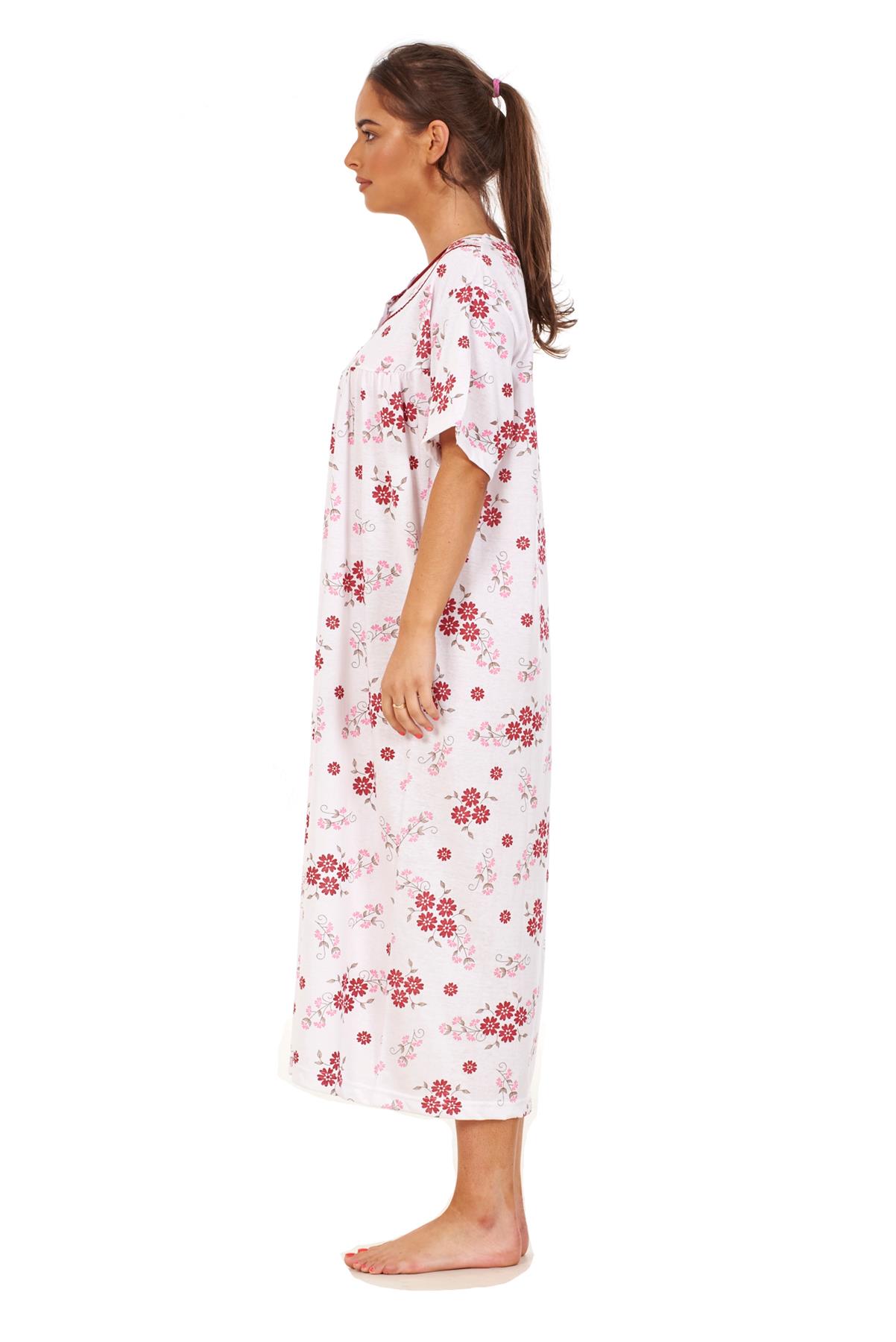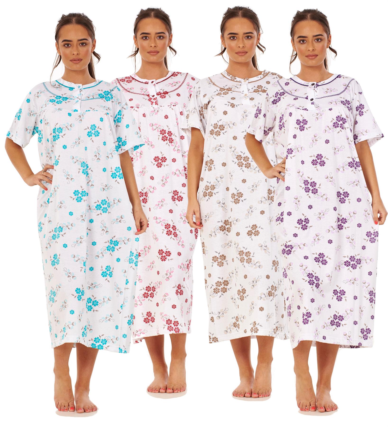 - Women Long Nightdress 100% Cotton Floral Button Short Sleeve Nightwear M to 3XL