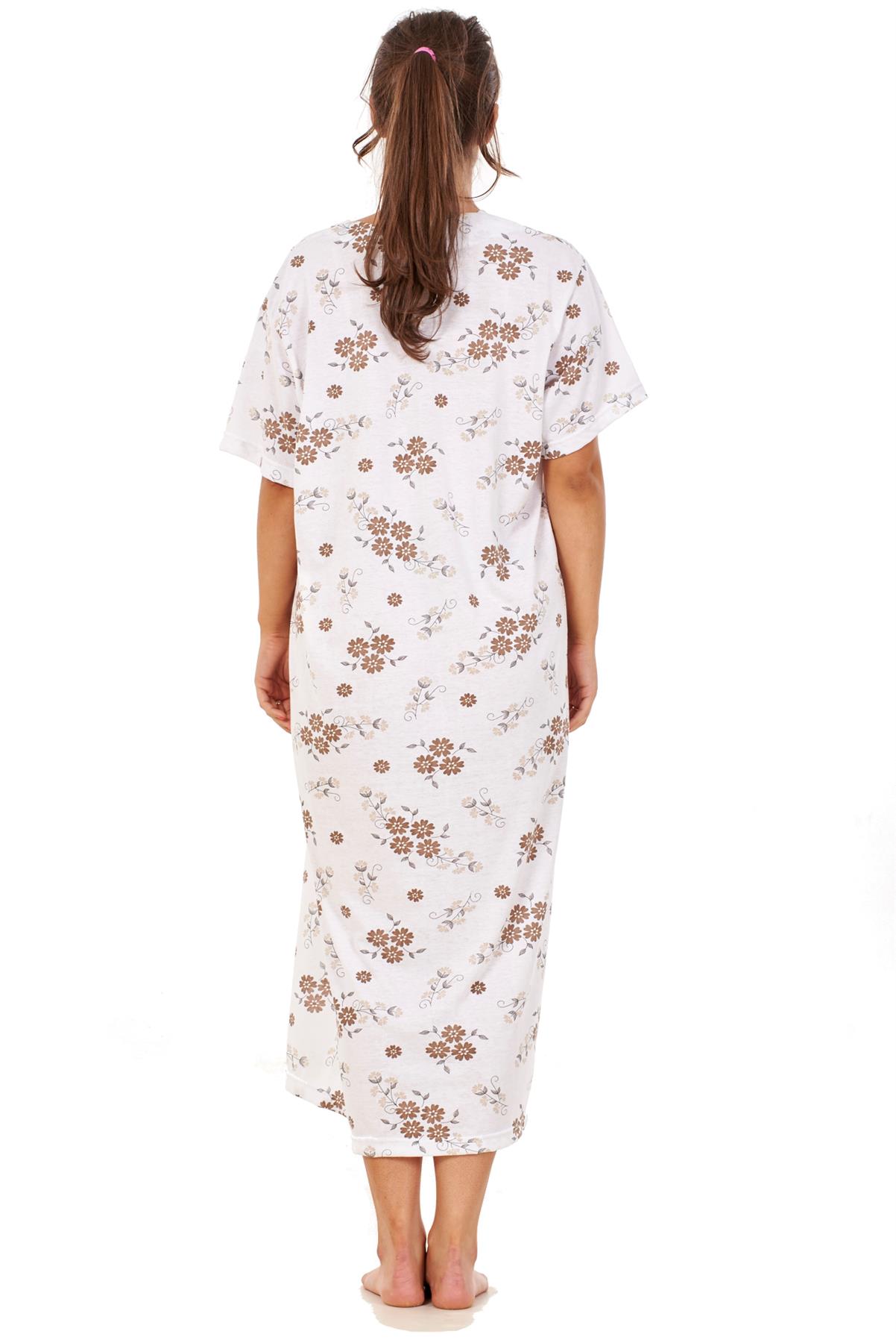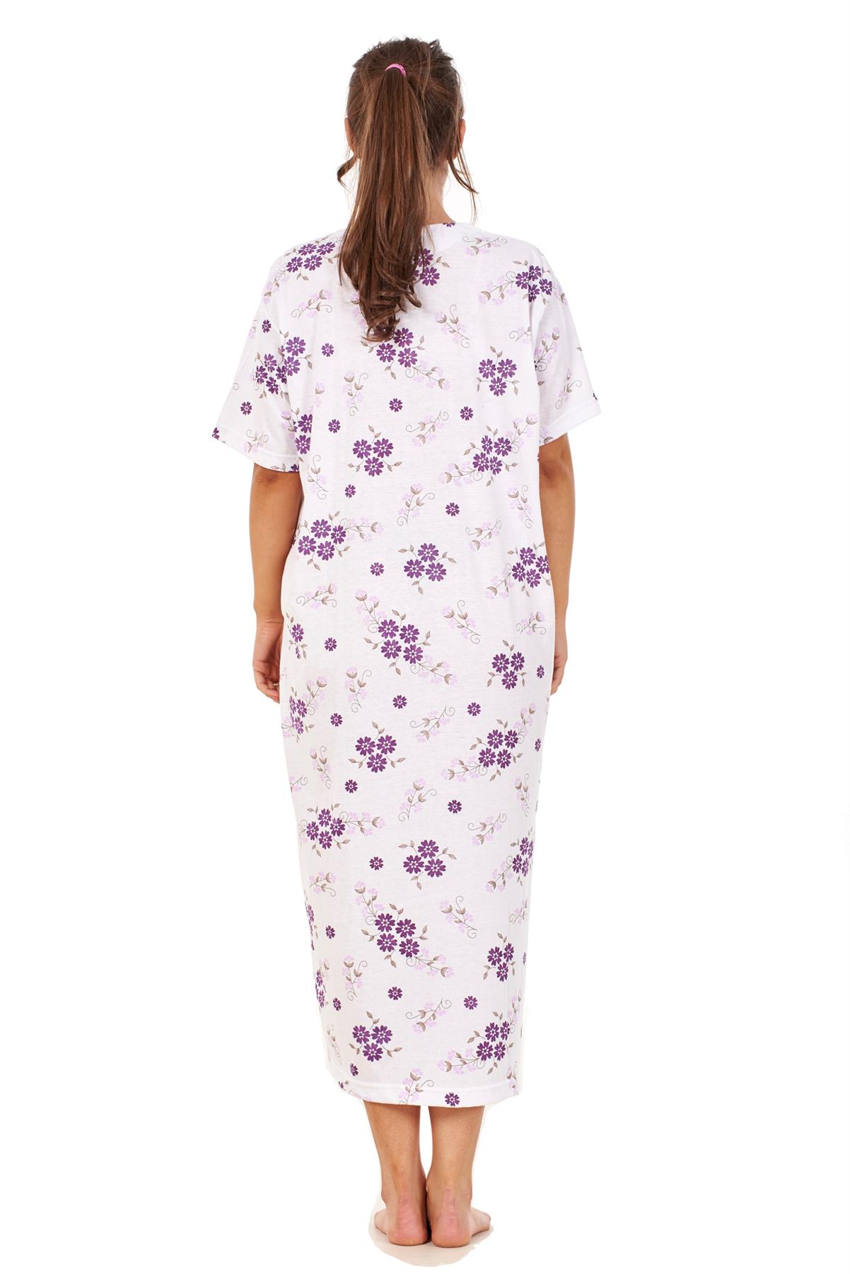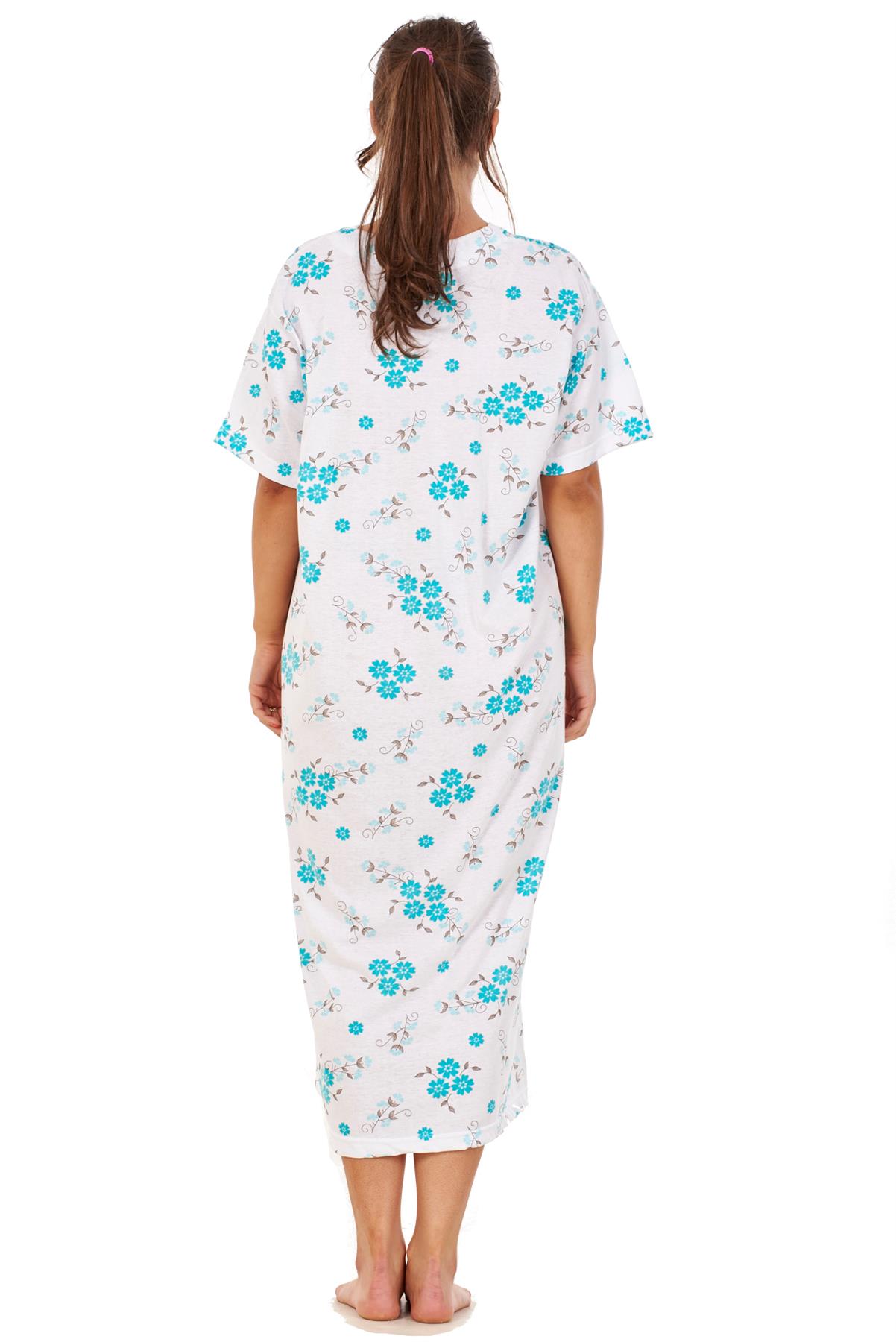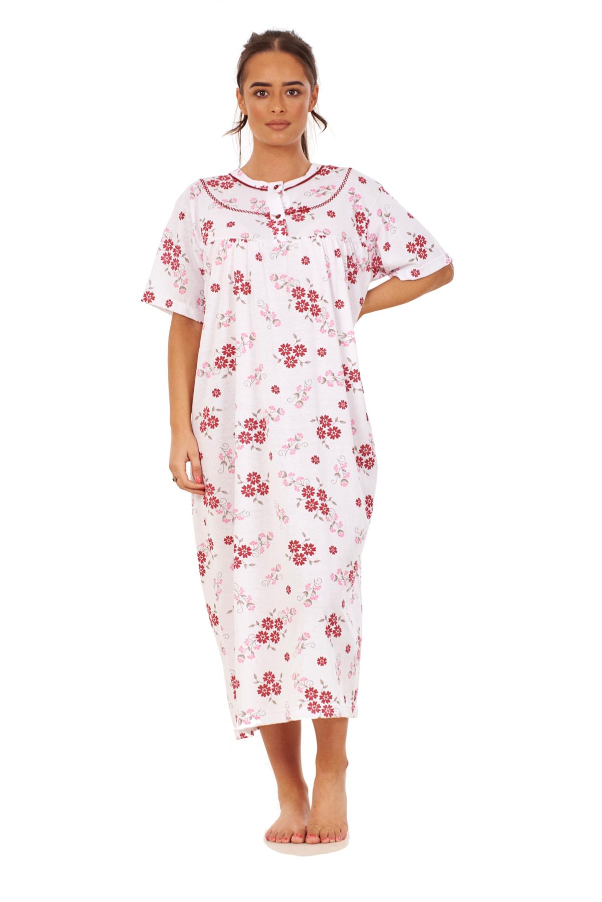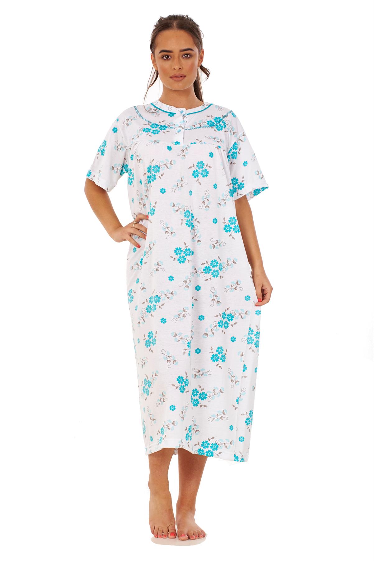 - Women Long Nightdress 100% Cotton Floral Button Short Sleeve Nightwear M to 3XL