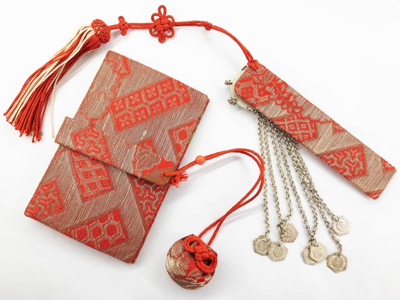 A Hakoseko is a wallet-like accessory for girls in kimono, especially for those who turn three, five and seven years old at the time of the Shichi-go-san festival. They are often used to carry Kaishi paper, a comb, mirror or a Kanazashi hair ornament.