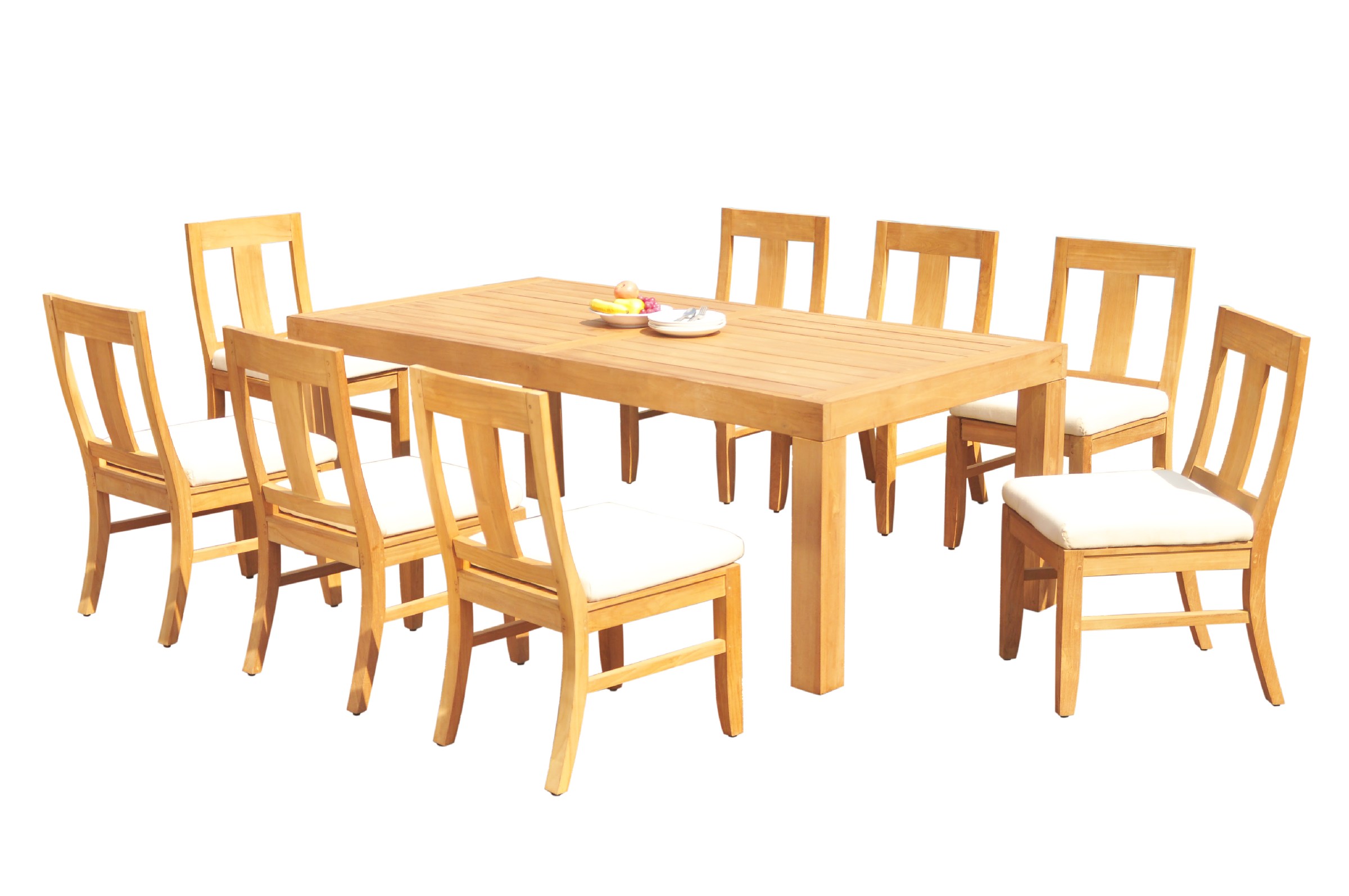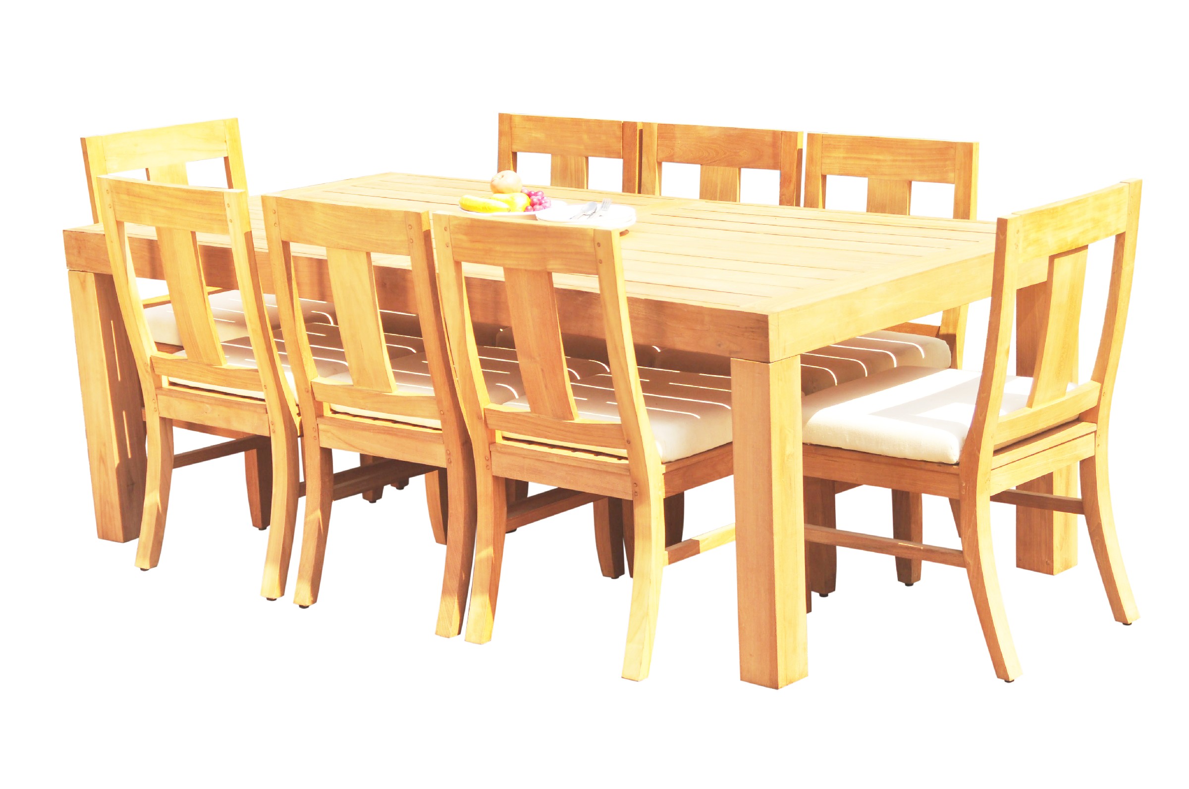 Set includes: 86" Canberra Rectangle Table and 8 Osborne Armless Chairs. Pictures shown with more chairs is for illustration purpose only. You will receive only 8 chairs. ** Wood Umbrella Hole Plug is also provided. ** 2" Umbrella Hole is available in the middle of the table. ** Umbrella is not included with the set, but can be purchase separately, please inquire. ** DON'T FORGET TO ENQUIRE ABOUT OUR SUNBRELLA CUSHIONS (SOLD SEPARATELY) ** If you need more chairs, please let us know. ** Assembly: Very little assembly is required. This furniture will be delivered in partially assembled sections. Assembly is quick and simple. **Accessories shown in picture are not included with the set. Please inquire if you are interested.