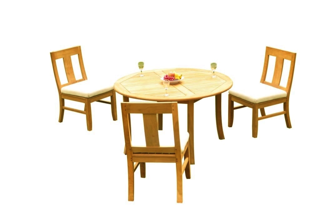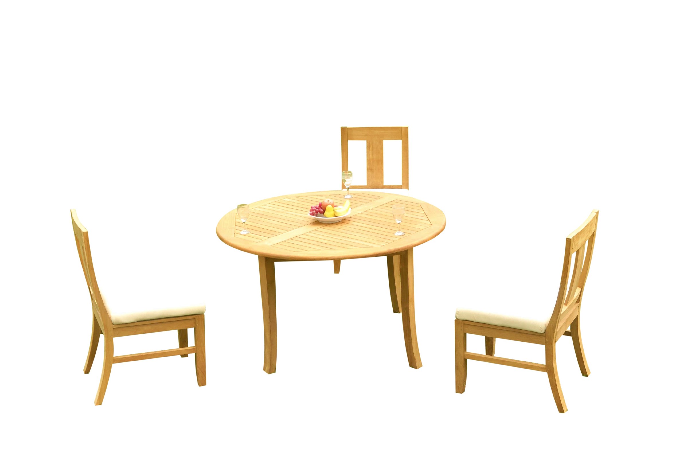 Set includes: 52" Round Table and 3 Osborne Armless Chairs. Pictures shown with more chairs is for illustration purpose only. You will receive only 3 chairs. ** Wood Umbrella Hole Plug is also provided. ** 2" Umbrella Hole is available in the middle of the table. ** Umbrella is not included with the set, but can be purchase separately, please inquire. ** DON'T FORGET TO ENQUIRE ABOUT OUR SUNBRELLA CUSHIONS (SOLD SEPARATELY) ** If you need more chairs, please let us know. ** Assembly: Very little assembly is required. This furniture will be delivered in partially assembled sections. Assembly is quick and simple. **Accessories shown in picture are not included with the set. Please inquire if you are interested.