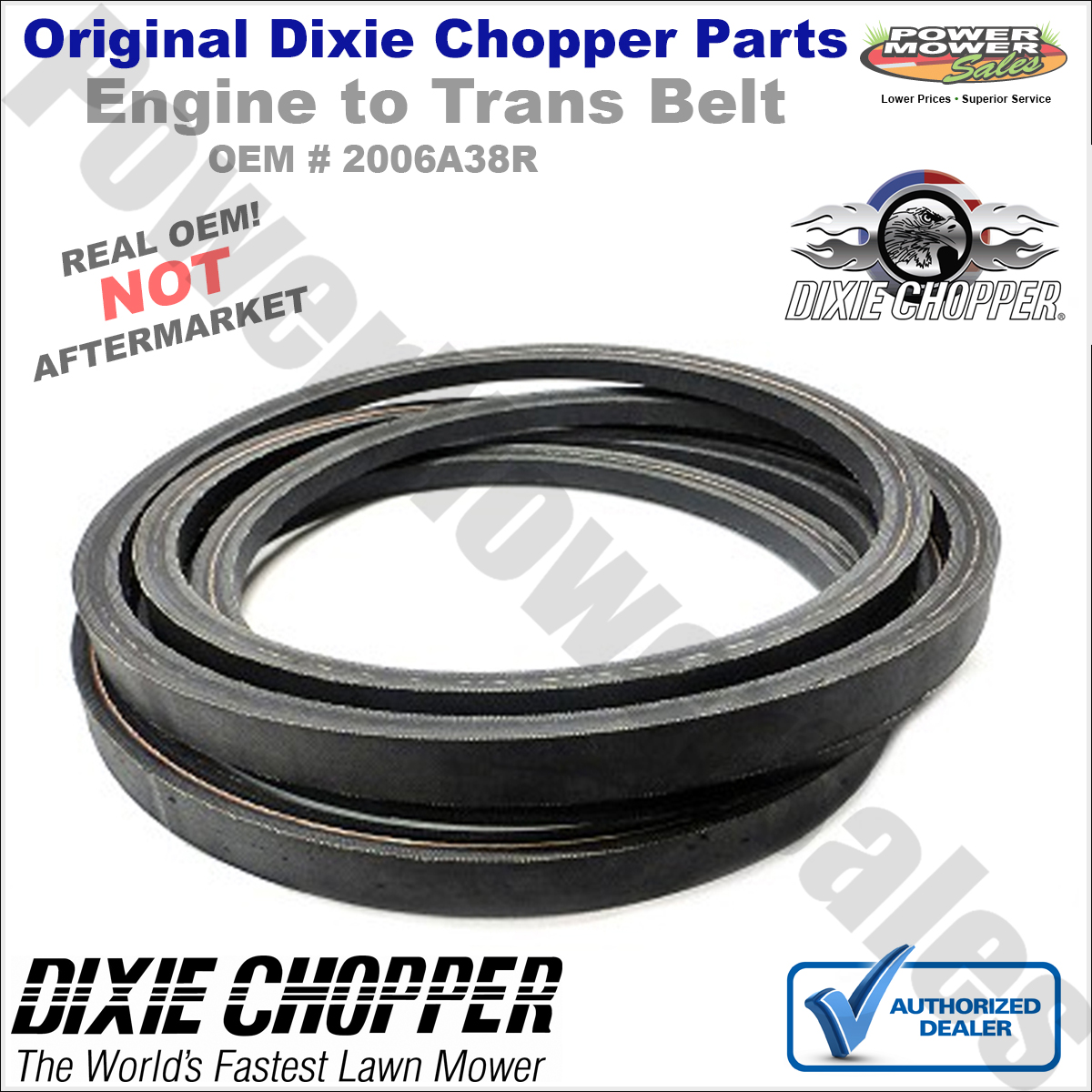 Dixie Chopper Engine to Trans Belt (V 38" B Section, Raw) for Lawn Mowers fits Xcaliber, LP3000-60, LP3000-72, XCD3666, XCD3674, XCD66, XCD74, XWD3500-60, XXWD3500-72 / 20256, 2006B38R