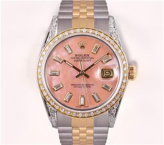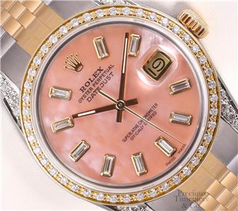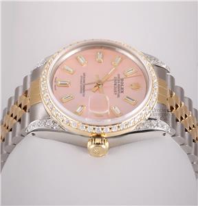 | DIAL | Custom Salmon Dial with Diamond Baguette Hour Markers-SI1 G-H Color |