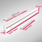 - Die Unterschrankleuchte hat mit 557x61x24mm (LxBxH) eine unauffällige Größe und ist dabei trotzdem leistungsstark. Ein 1,8m langes Netzkabel mit Standard- Euroflachstecker stellt die Stromzufuhr sicher. Dieser Artikel ist wahlweise auch in Silber erhältlich.